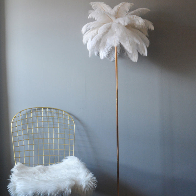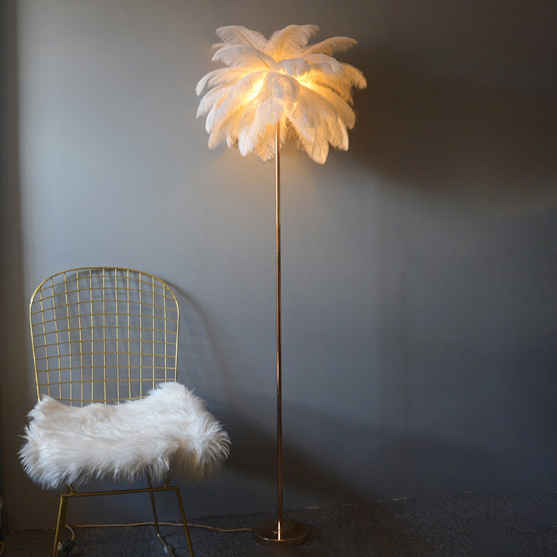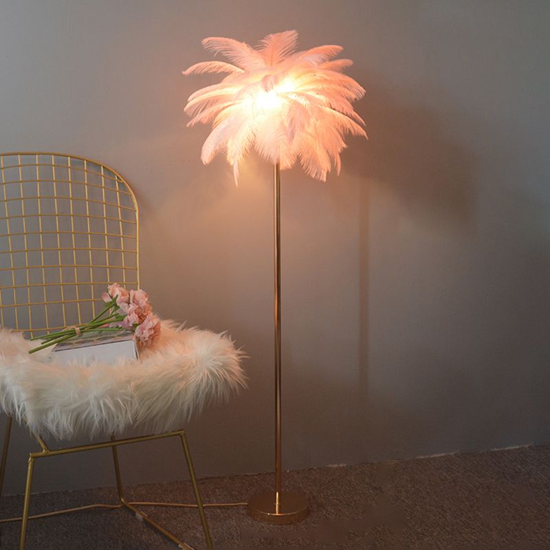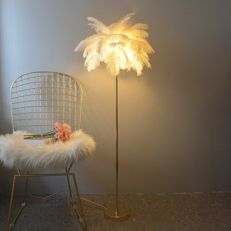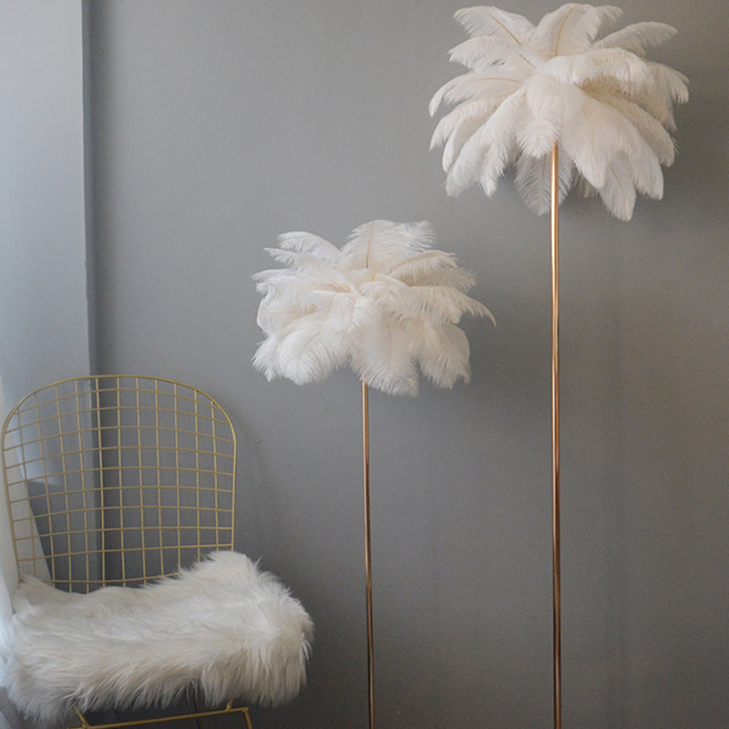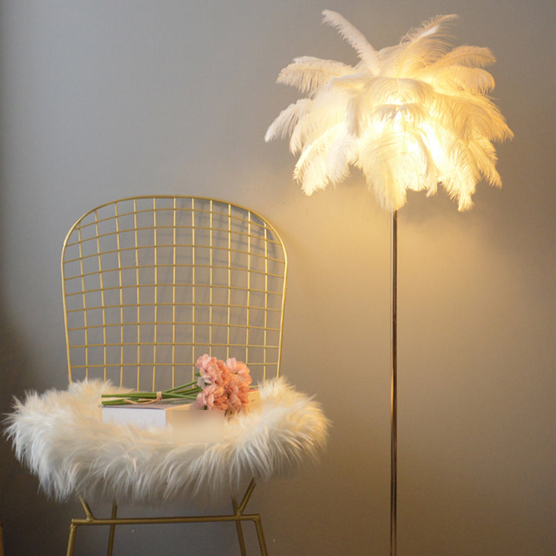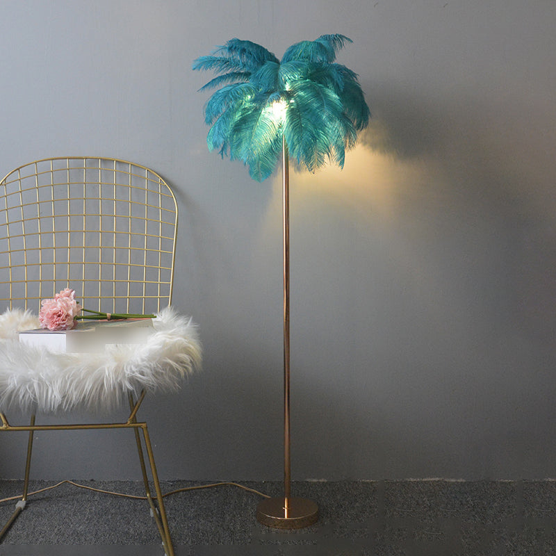 Modern Floor Lamp Colorful Floor Lighting Fixture with Feather Shade for Sitting Room