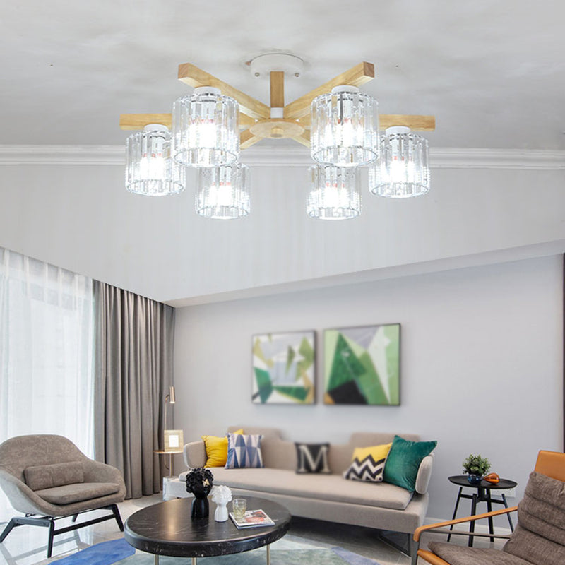 Modern Flush Light Fixtures Crystal Cylinder Flush Mount Lamp in Brown