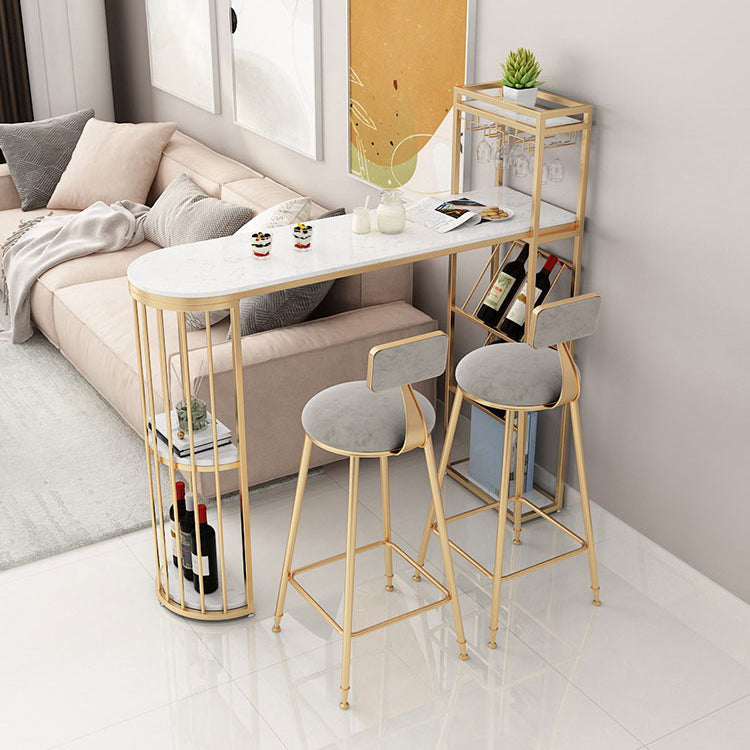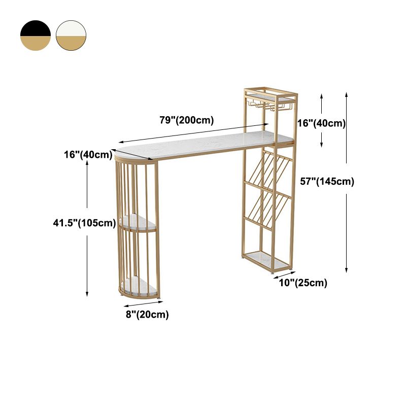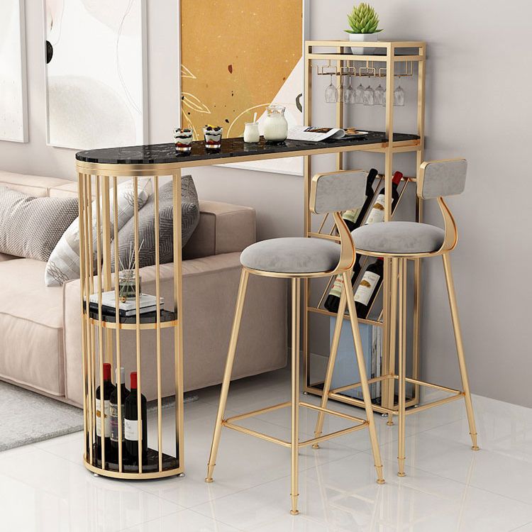 Modern Gold Iron Bar Dining Table Faux Marble Top Indoor Bistro Table with Wine Rack