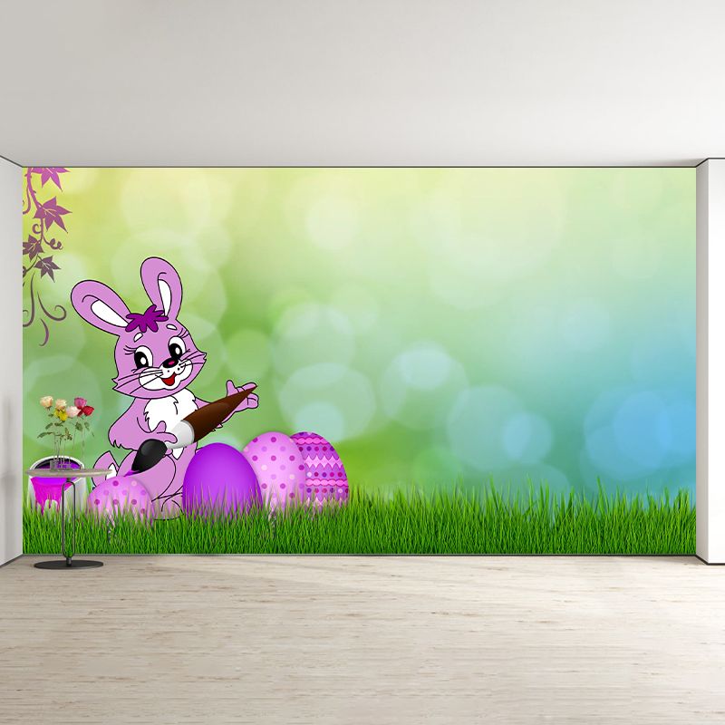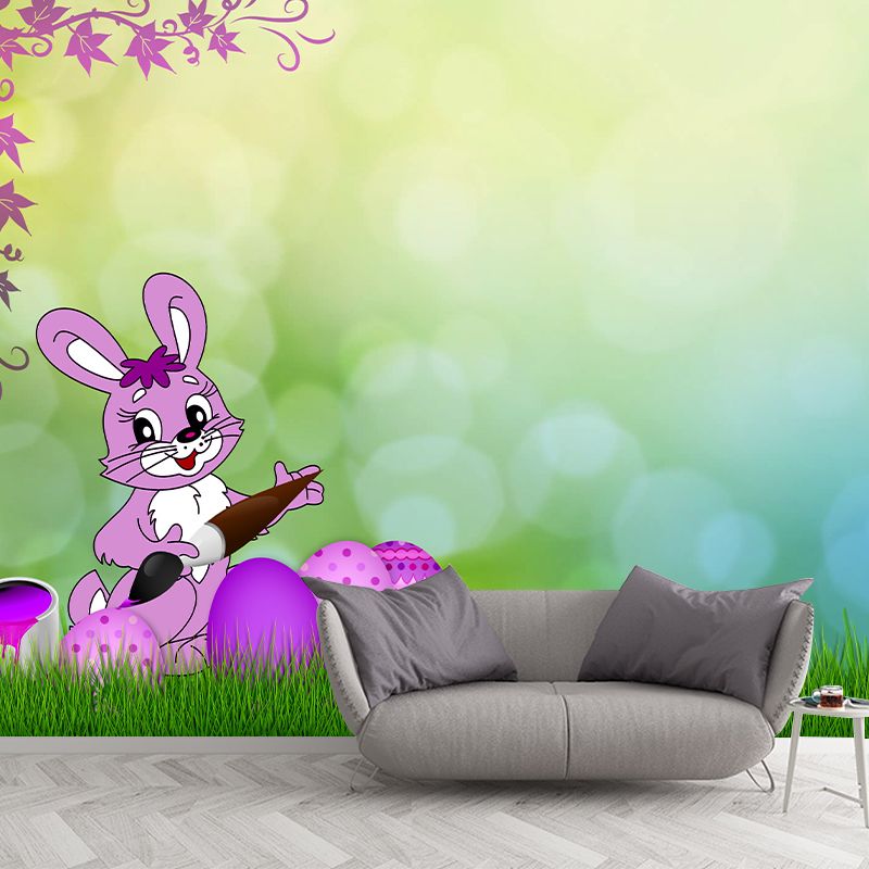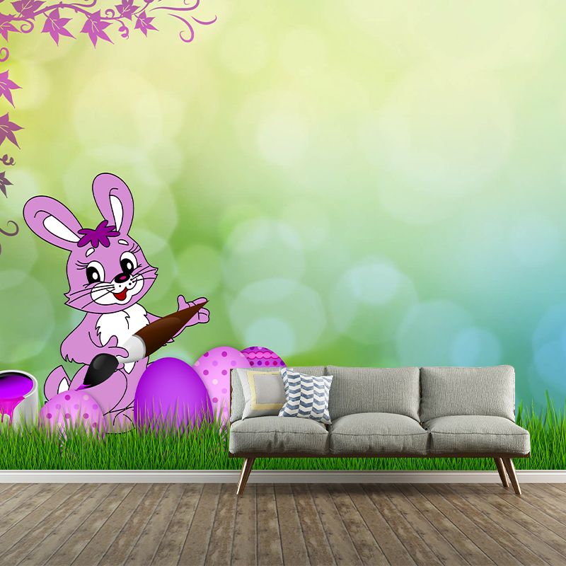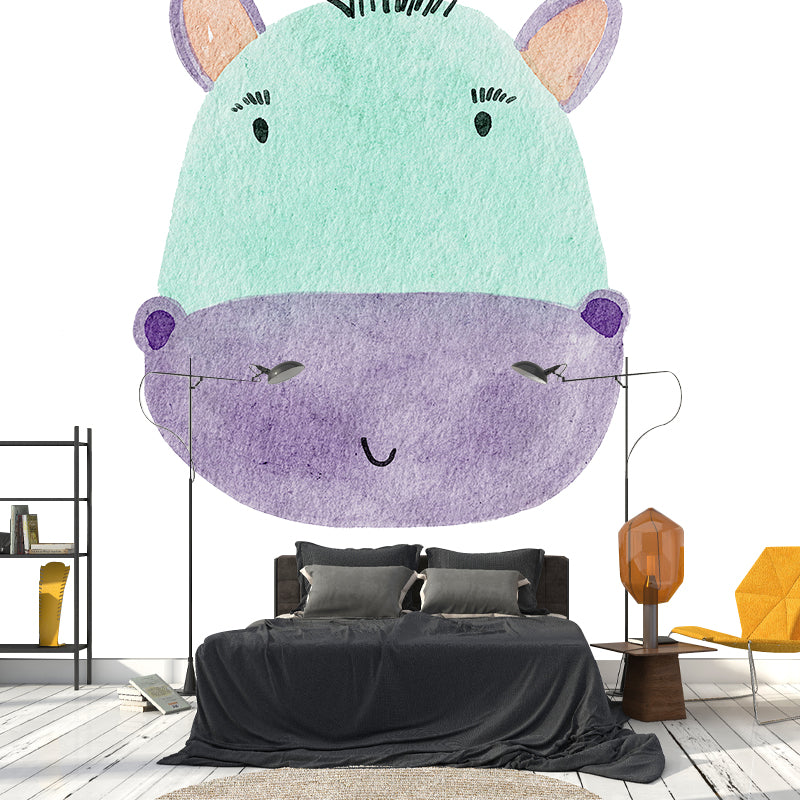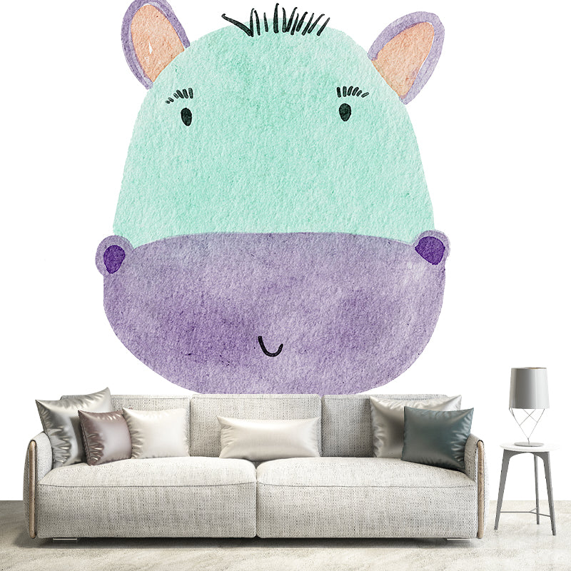 Modern Illustration Mural Wallpaper Cartoon Animals Sitting Room Wall Mural