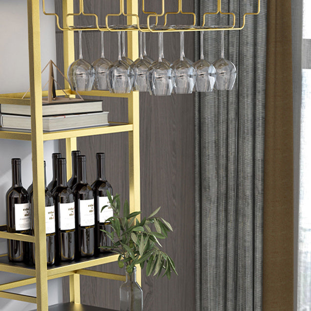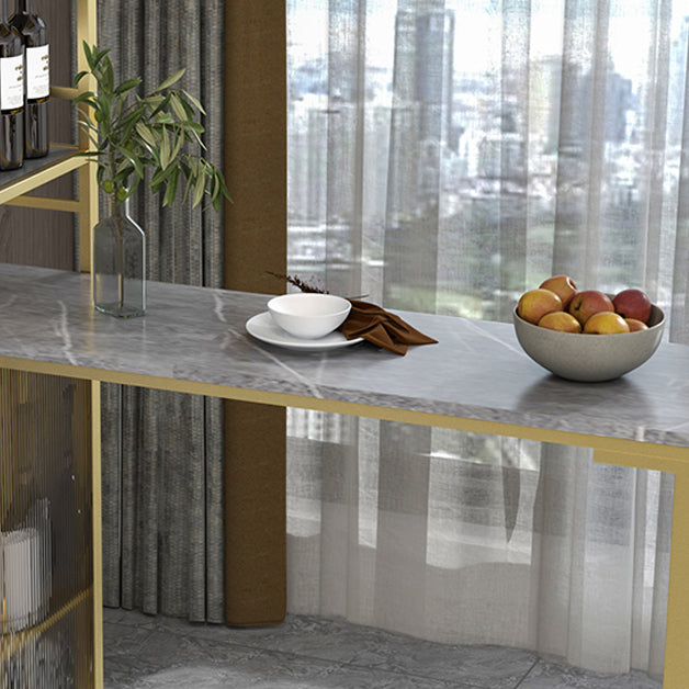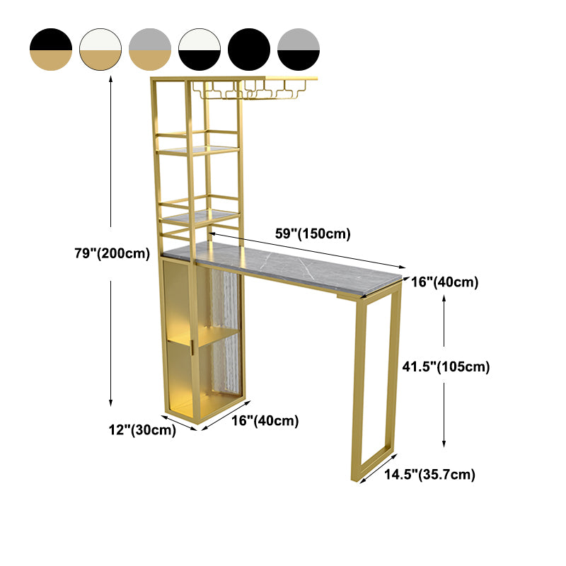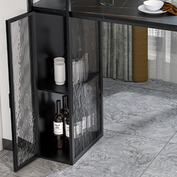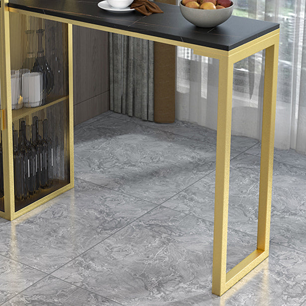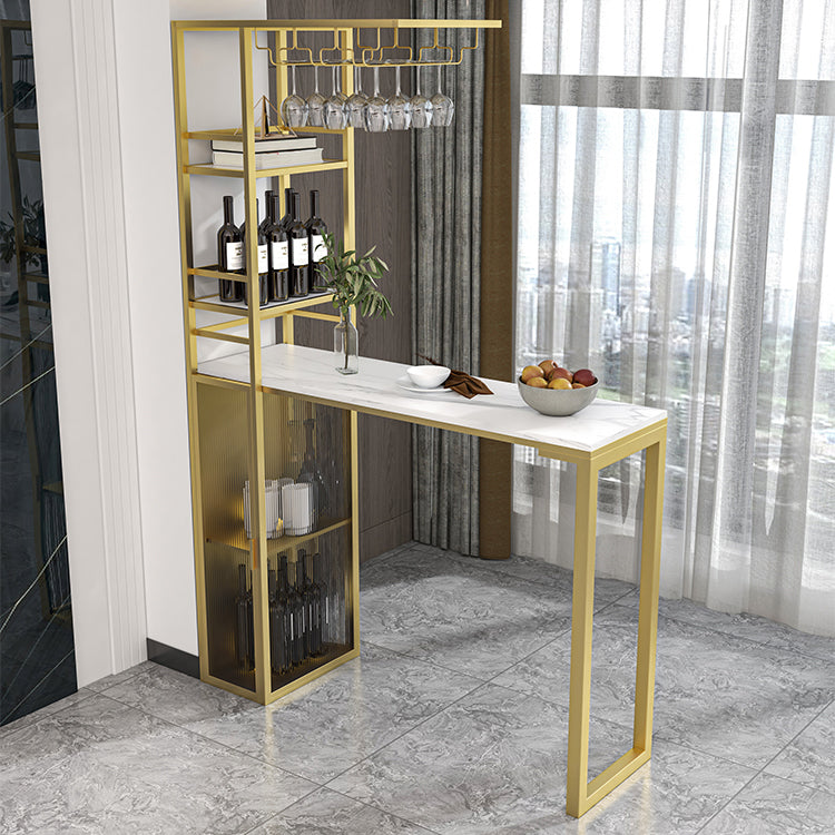 Modern Iron Bar Dining Table Stone Top Rectangle Indoor Bistro Table with Wine Rack