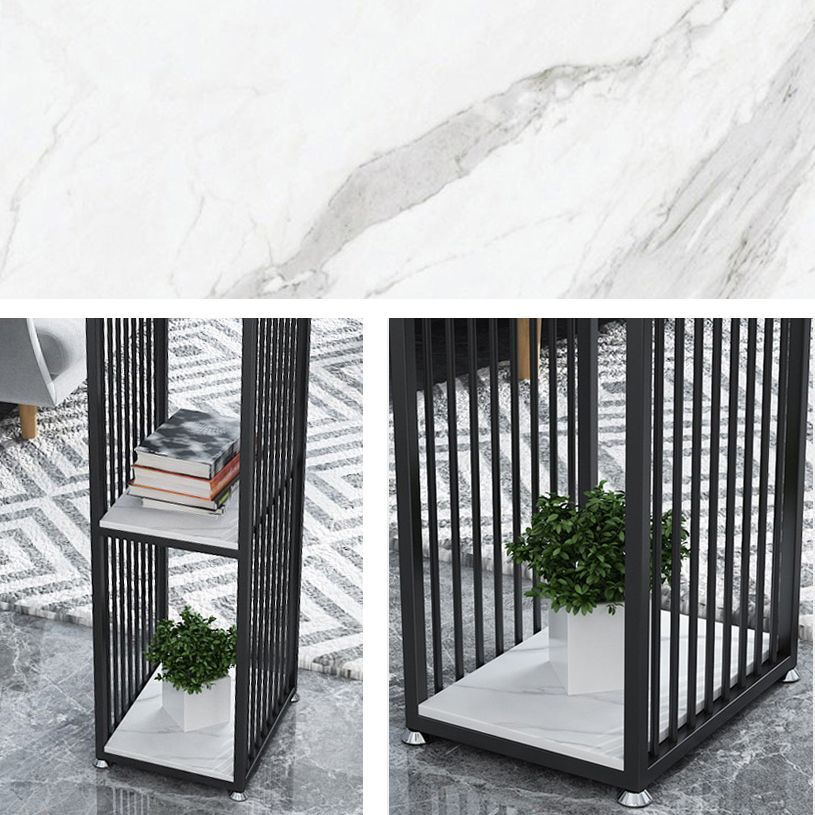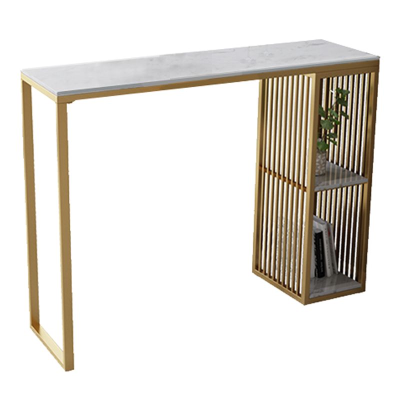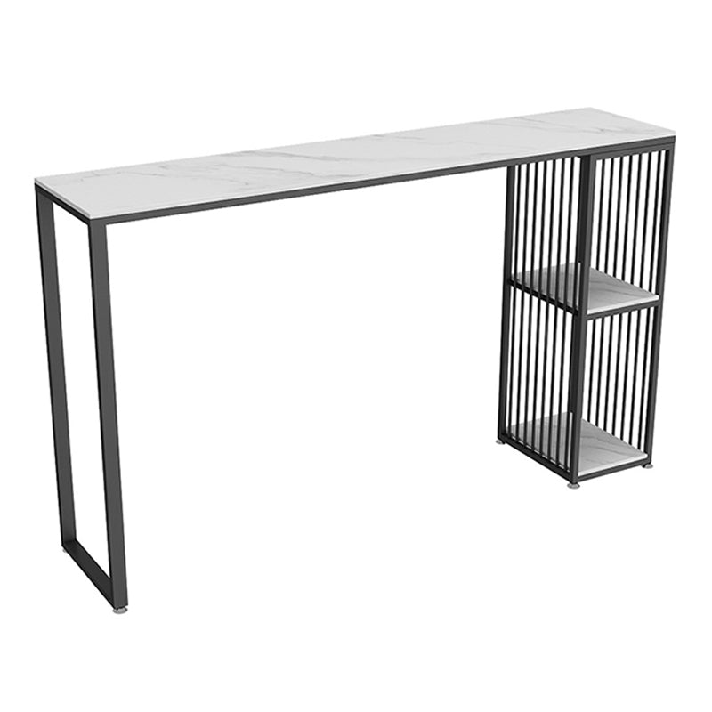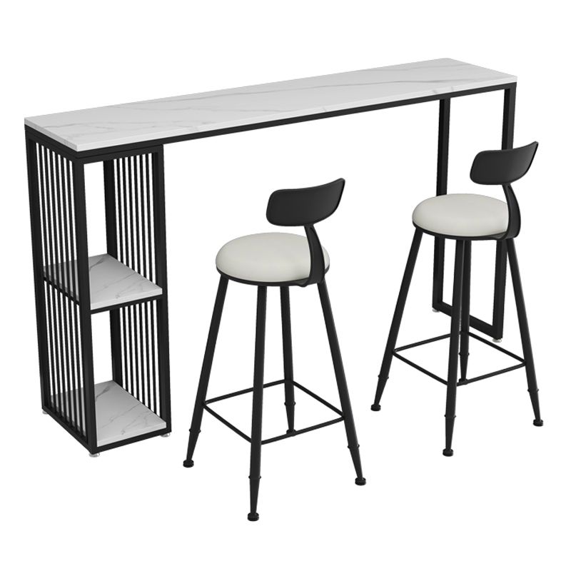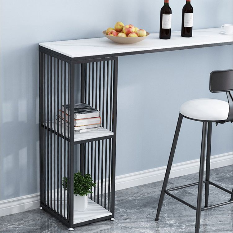 Modern Iron Bar Dining Table White Stone Top Rectangle Indoor Bistro Table with Shelf