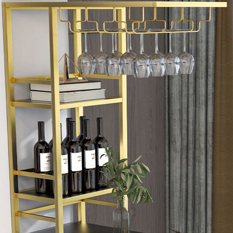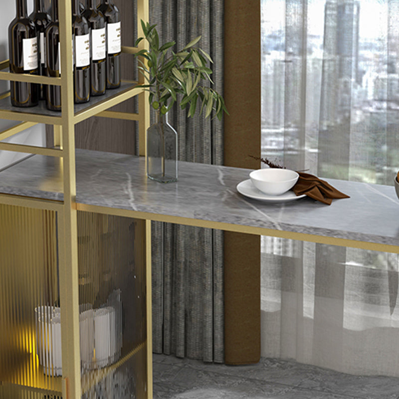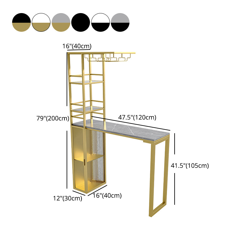 Modern Iron Bistro Table Stone Top Rectangle Indoor Bar Dining Table with Wine Rack