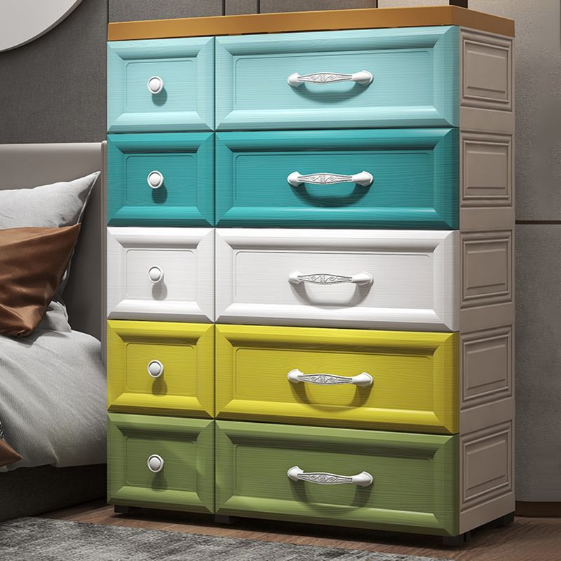 Modern Kids Nightstand Plastic 10 Drawers Baby Dresser for Bedroom