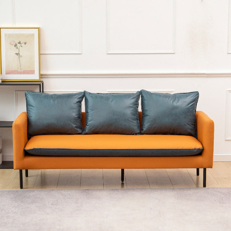 Modern Leather Square Arm Sofa with Loose Back for Living Room