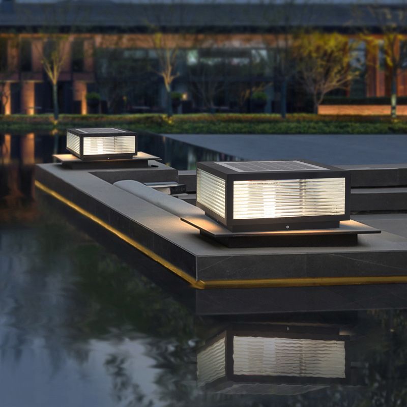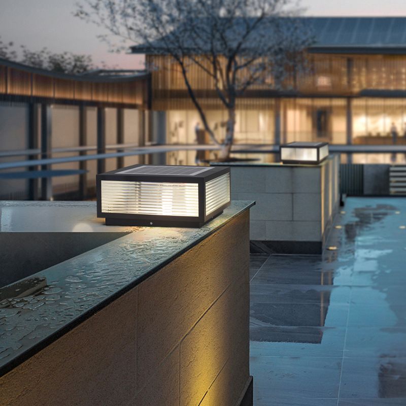 Modern LED Pillar Lighting Fixture Glass Solar Light for Garden