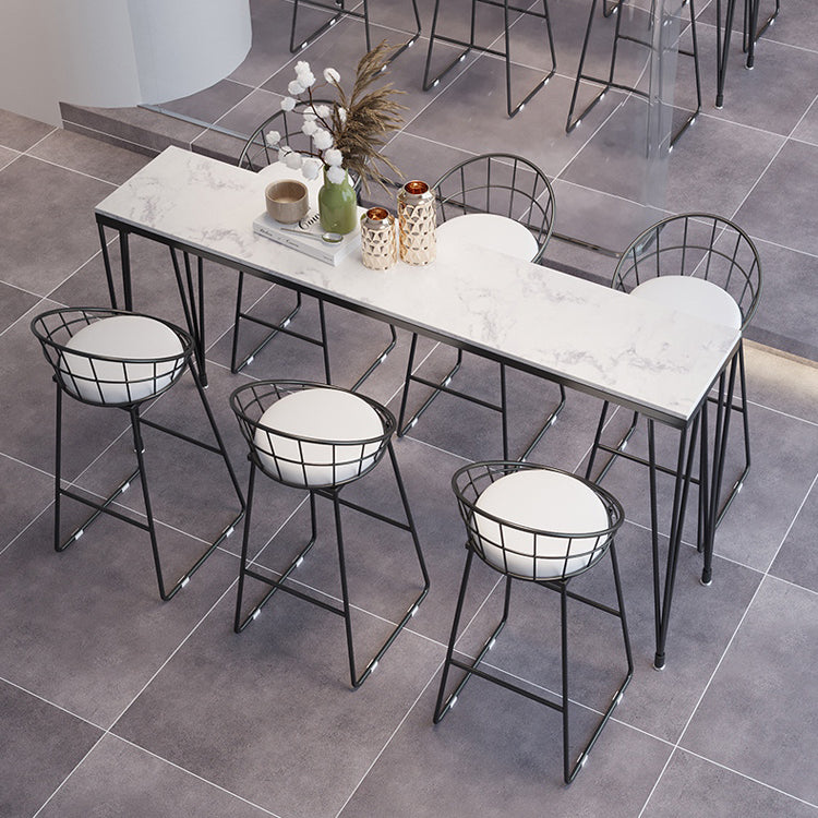 Modern Marble Pub Table with Rectangle Table Top Black Legs Table - 42" H