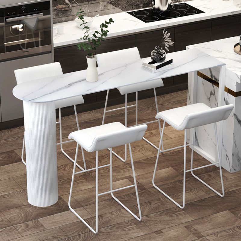 Modern Marble Pub Table with Specialty Table Top Double Pedestal Table- 41.3" H