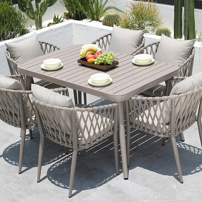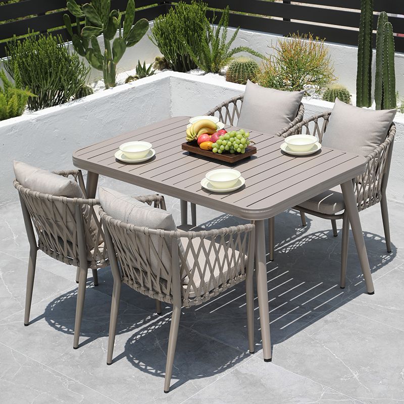 Modern Metal Dining Room Chair and Table Set with Standard Gray Table
