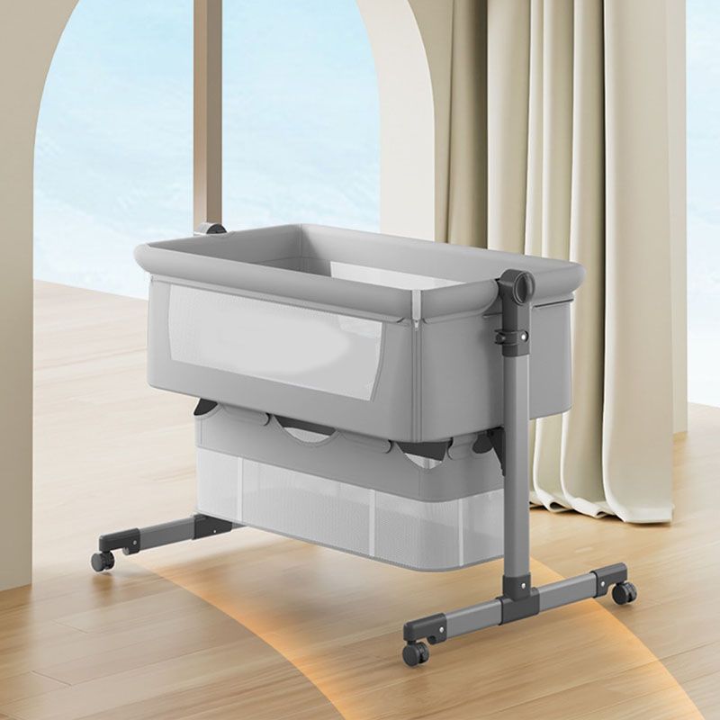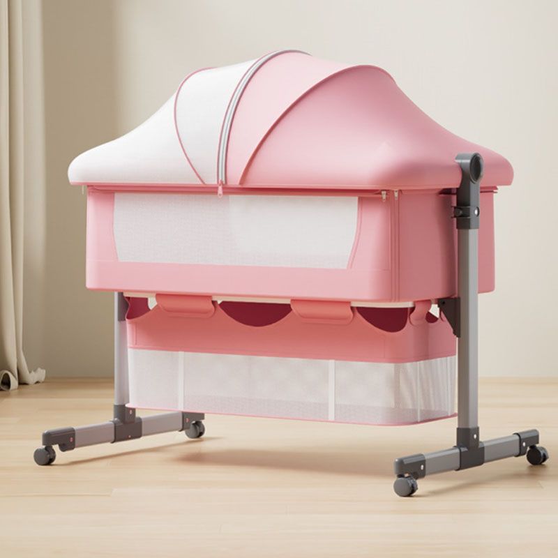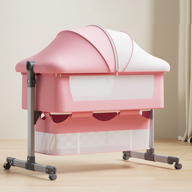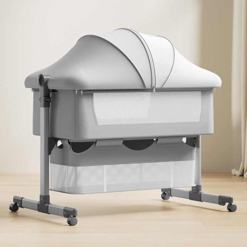 Modern Metal Rocking Foldable Crib Cradle Height Adjustable with Canopy