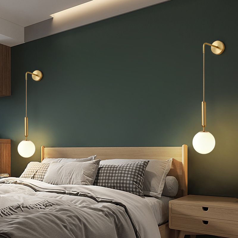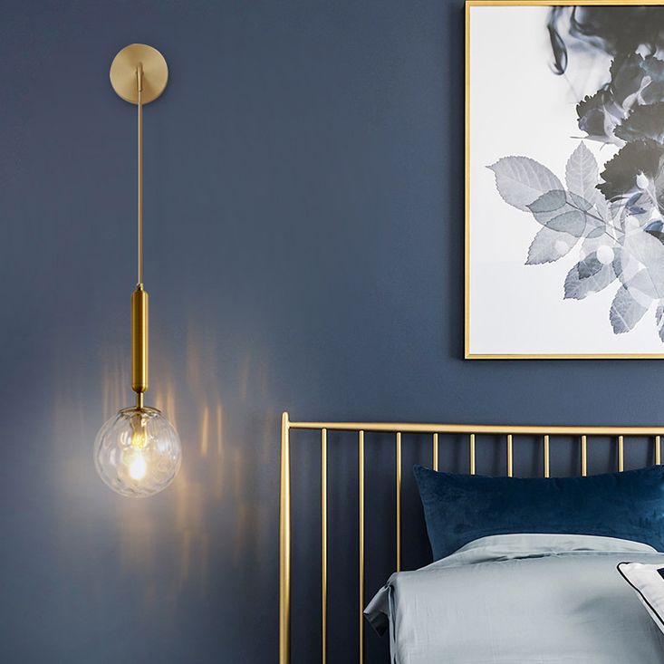Modern Metal Wall Lighting Sconce Ball Glass Shade Wall Lamp with Hanging Wire