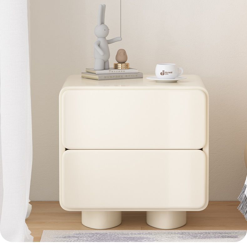 Modern Narrow Nightstand Neutral Kids Bedside Table with Drawers
