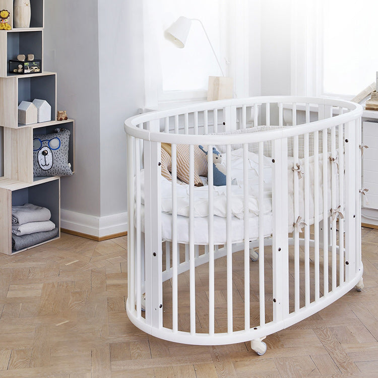Modern Natural Nursery Bed with Guardrails Convertible Nursery Bed