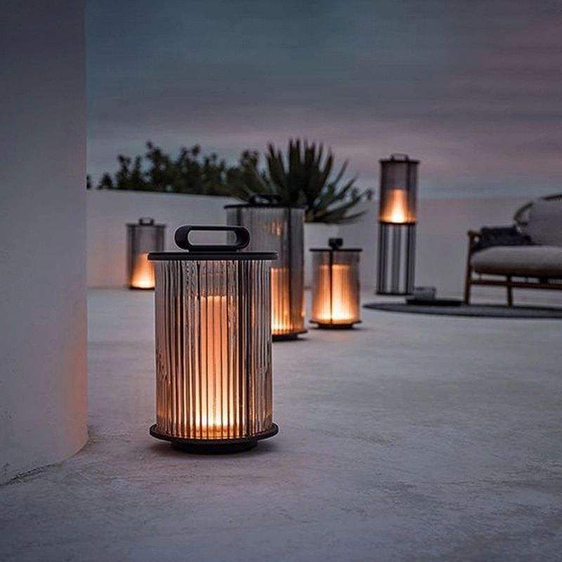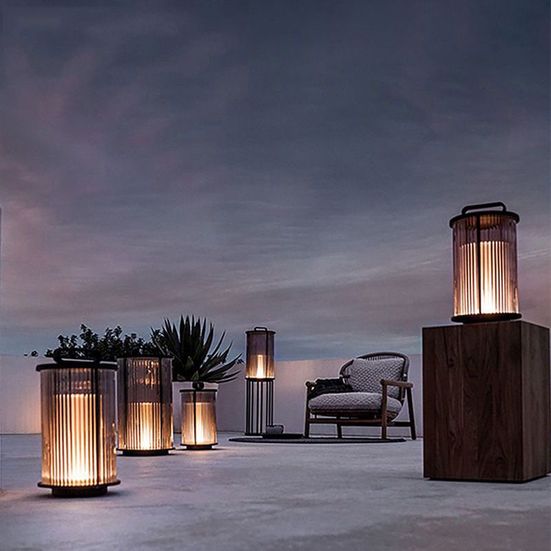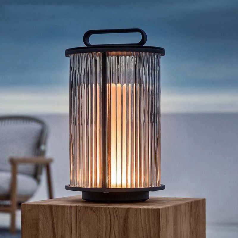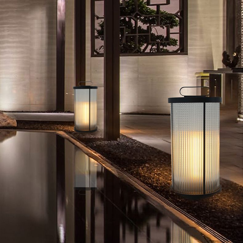 Modern Outdoor Lamp Minimalist Solar Lamp with Glass Shade for Backyard
