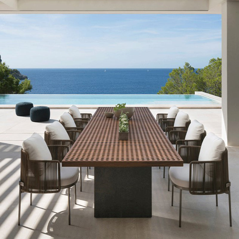 Modern Patio Dining Table Set 1/6/9 Pcs Wood Patio Dining Table and Chairs