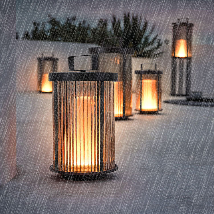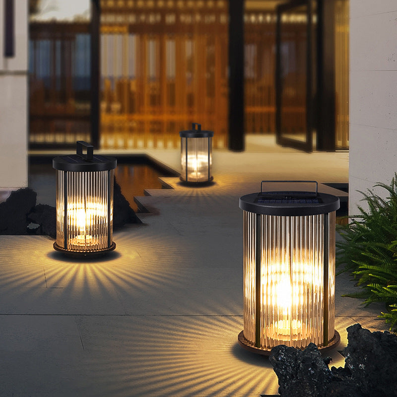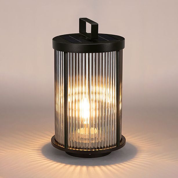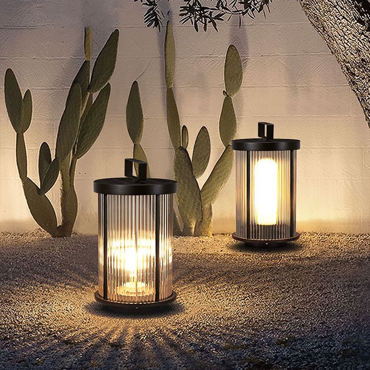 Modern Pillar Lamp Black Outdoor Lamp with Glass Shade for Garden