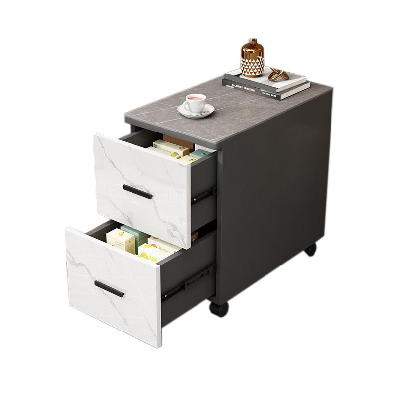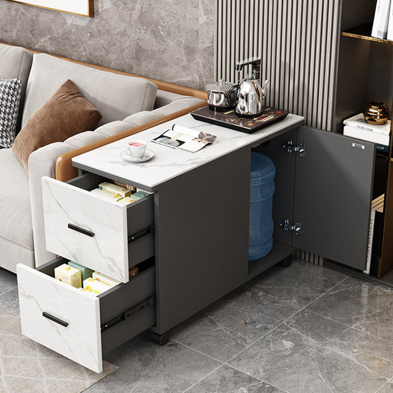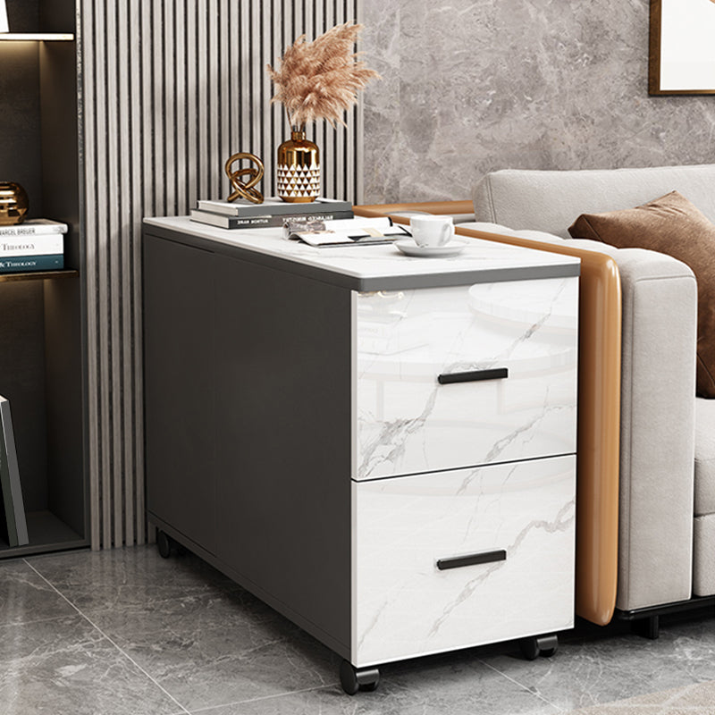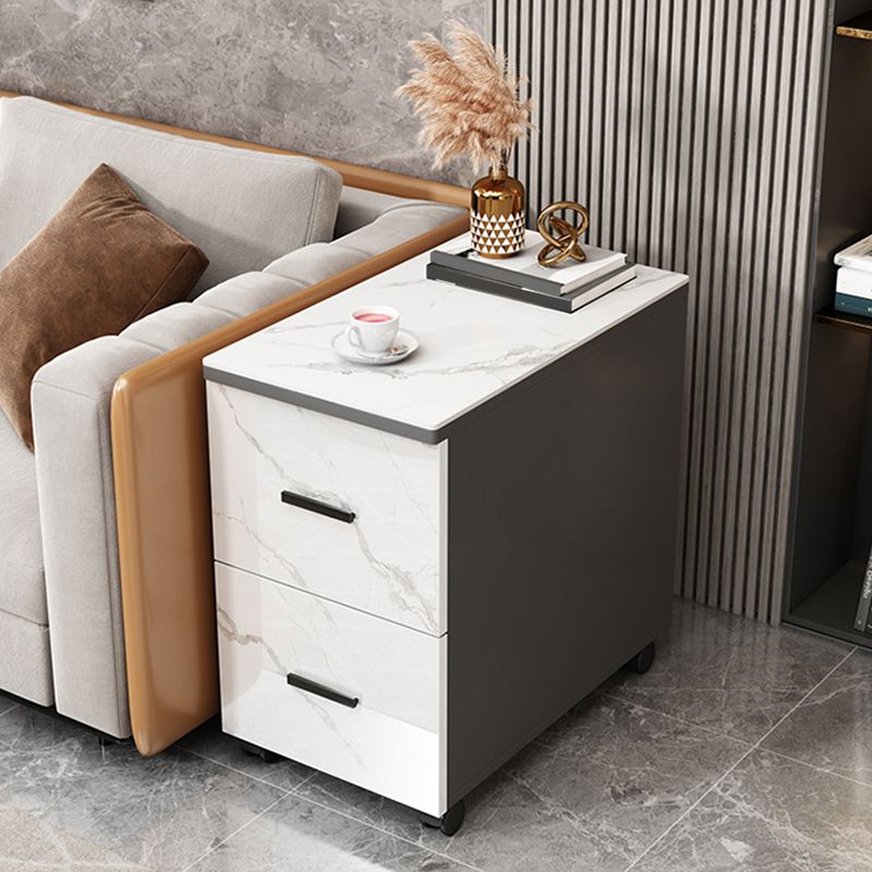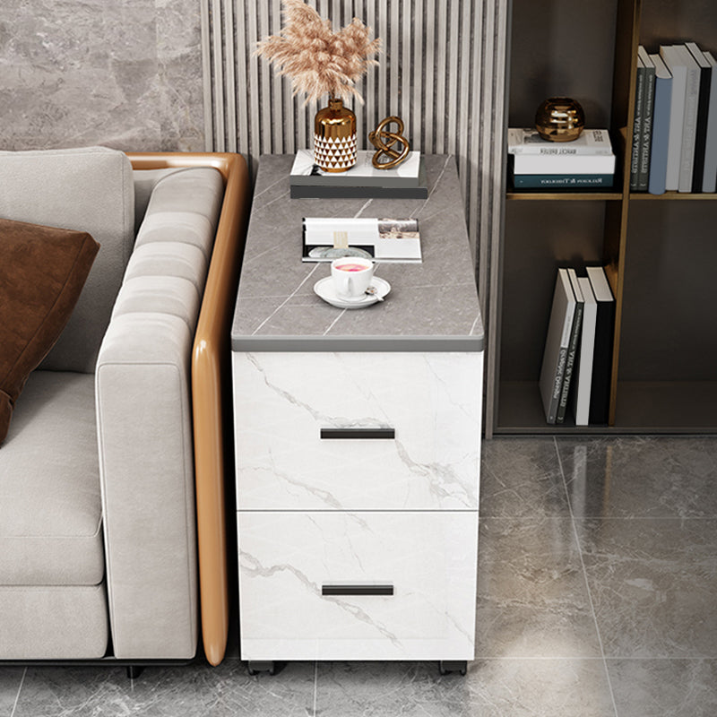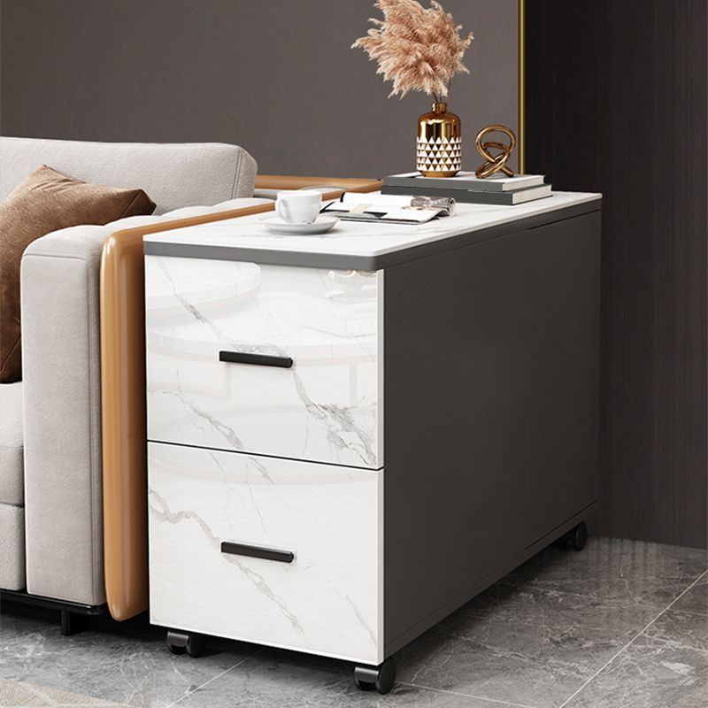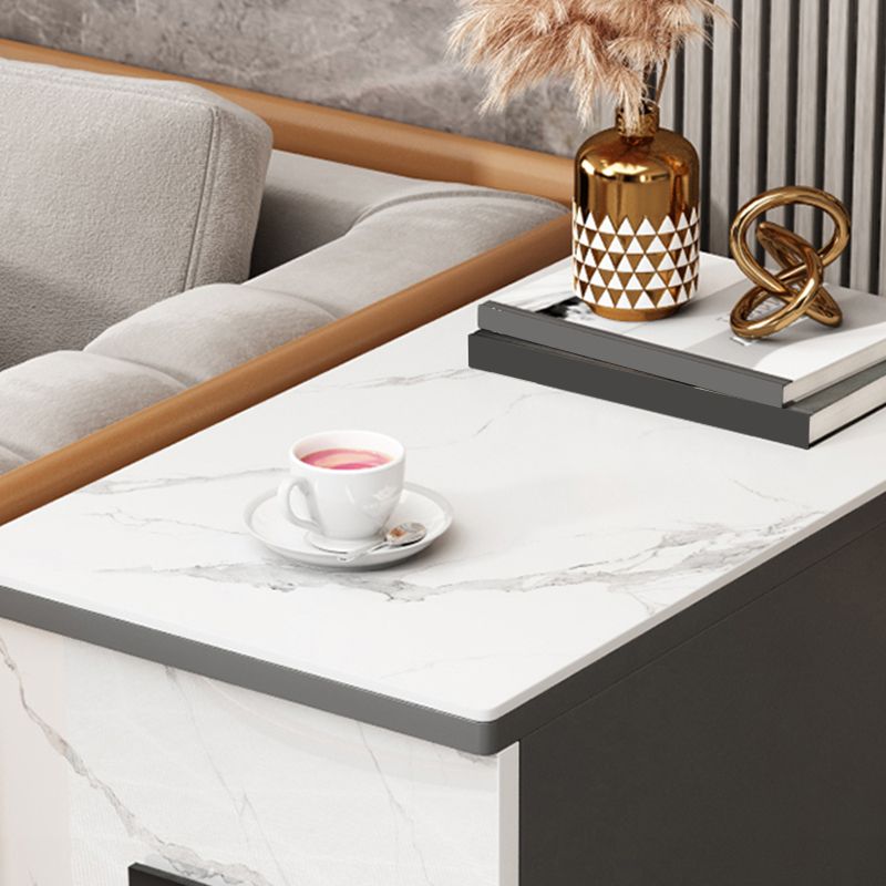 Modern Rectangle Sofa Side Accent Table with Stone Top and Drawers