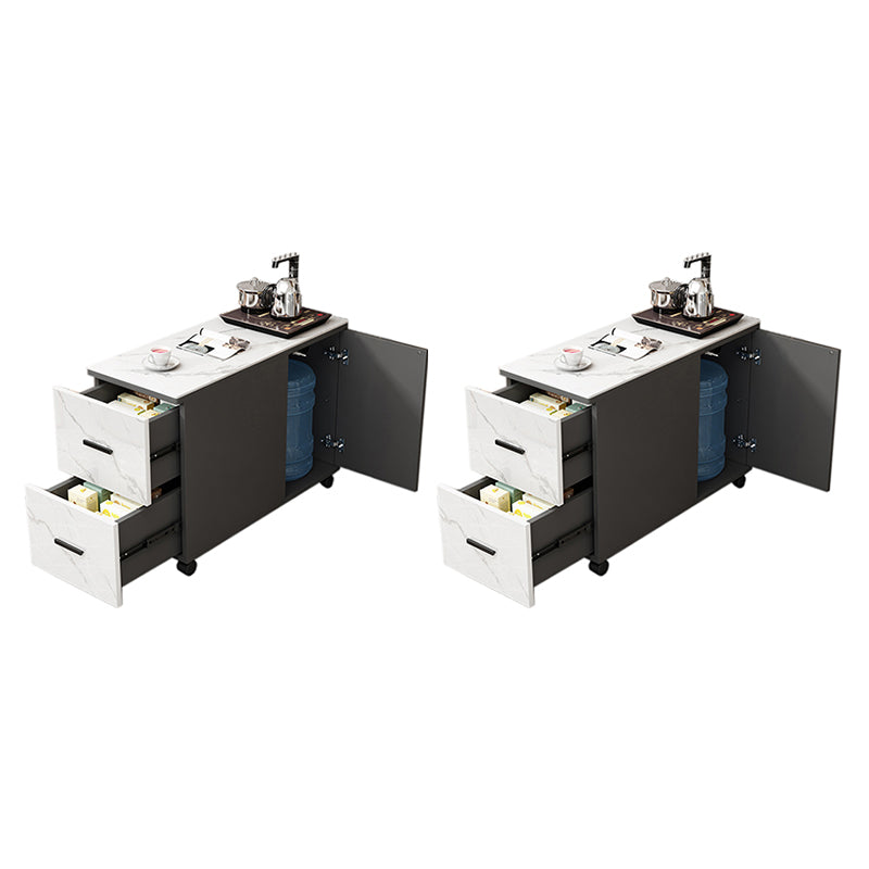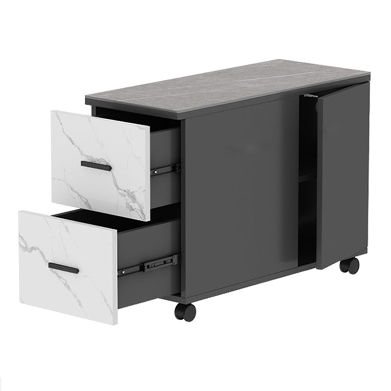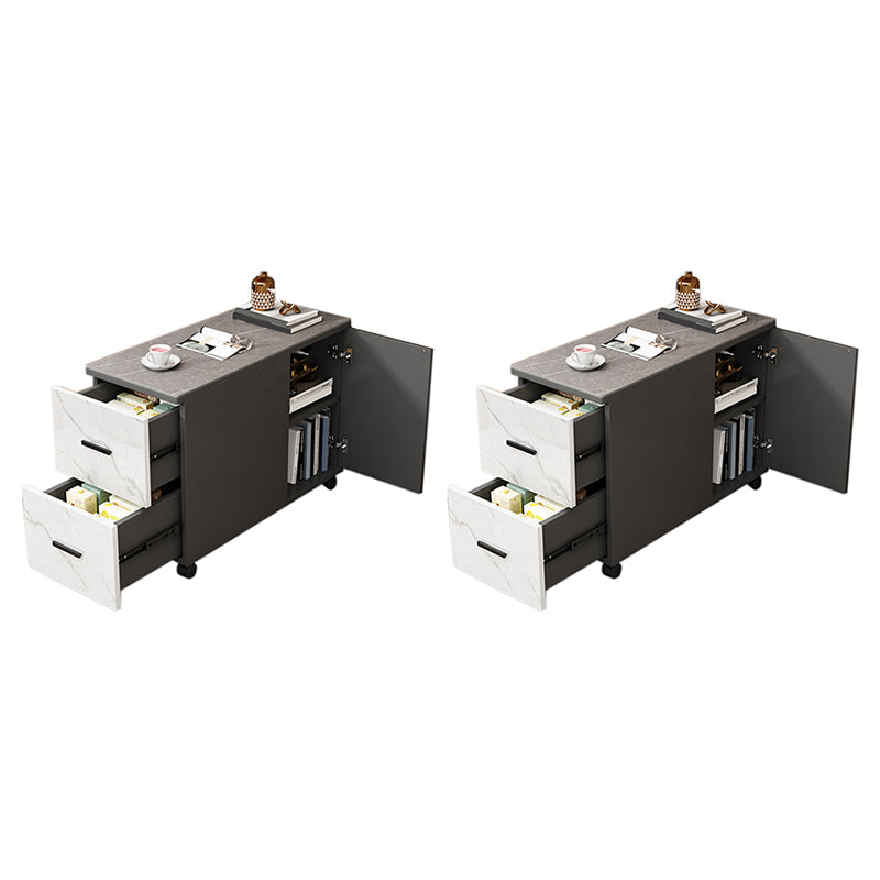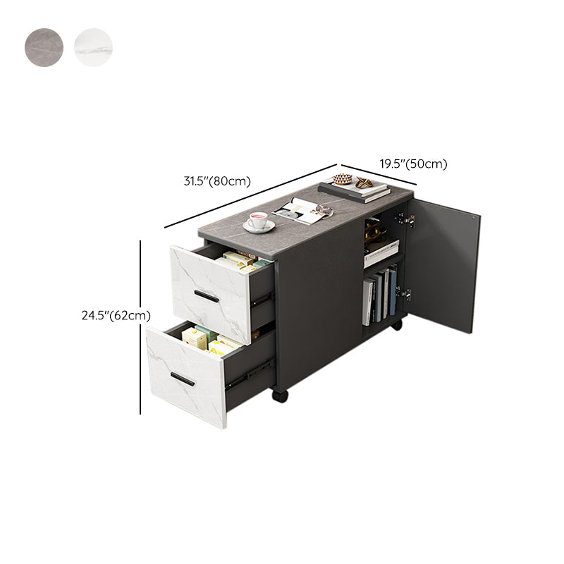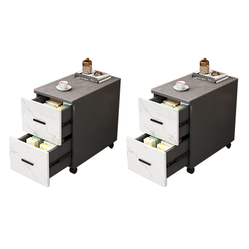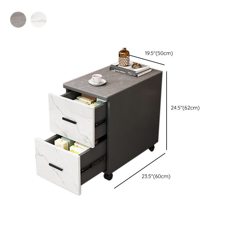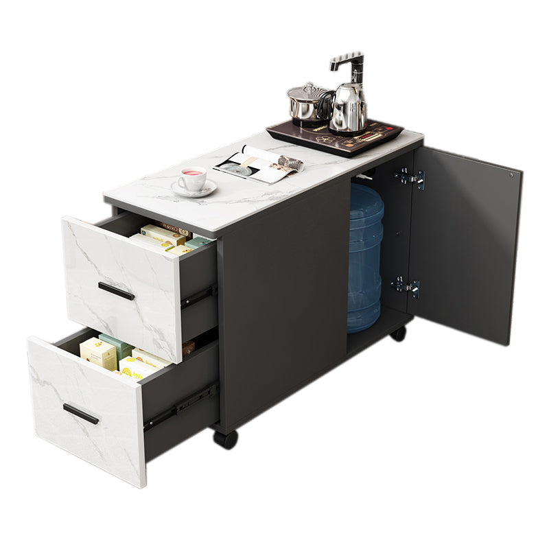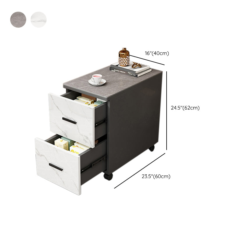 Modern Rectangle Sofa Side Accent Table with Stone Top and Drawers