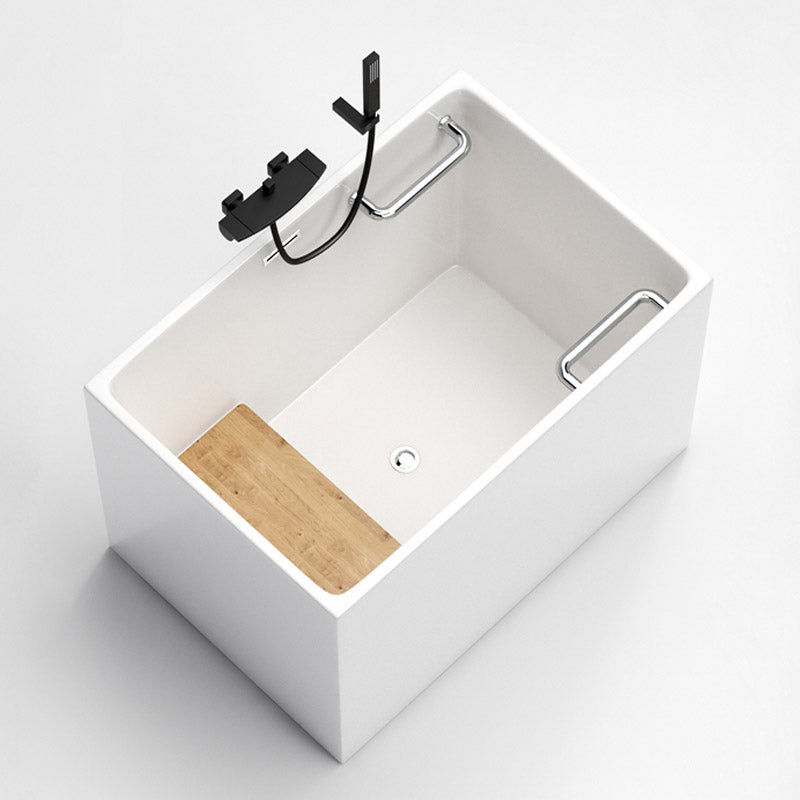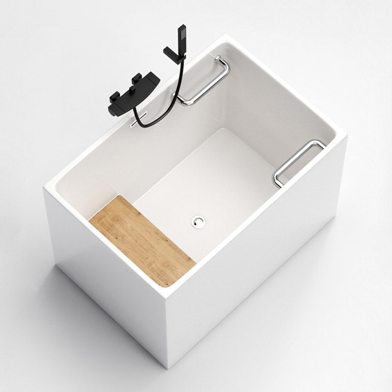 Modern Rectangle White Acrylic Bathtub Back to Wall with Drain Bath Tub and Overflow Hole