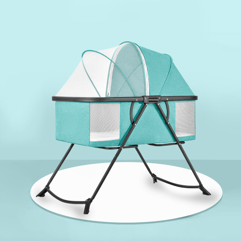 Modern Rocking Metal Gliding Crib Cradle Height Adjustable with Bedding