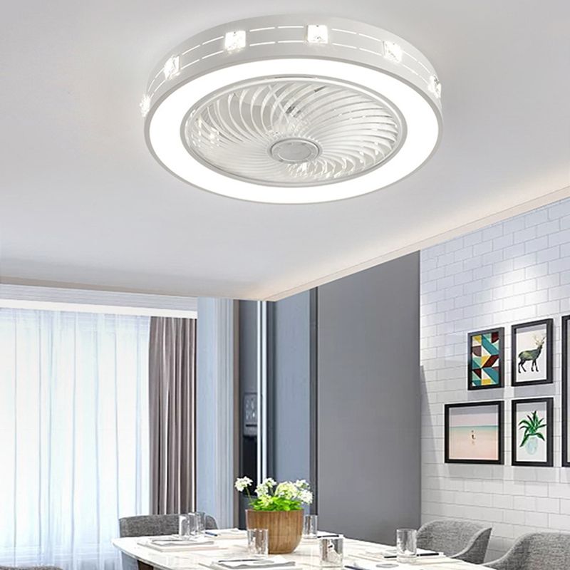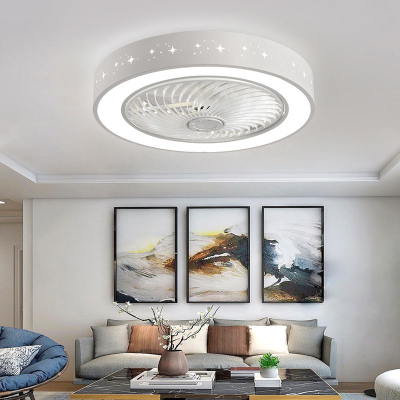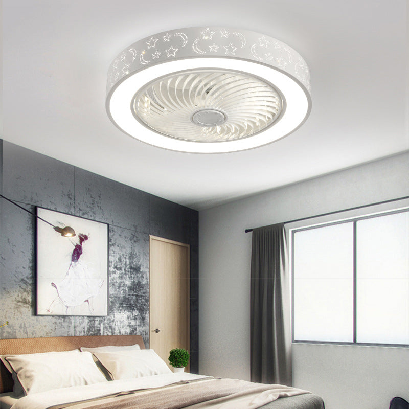 Modern Round LED Fan Light Simplicity Metal Bedroom Flush Mount Ceiling Light