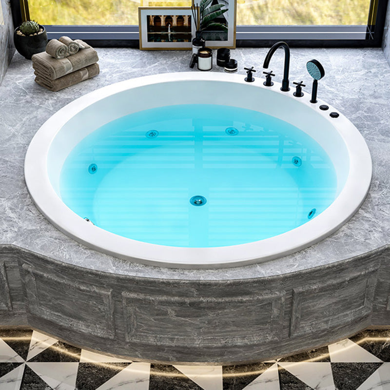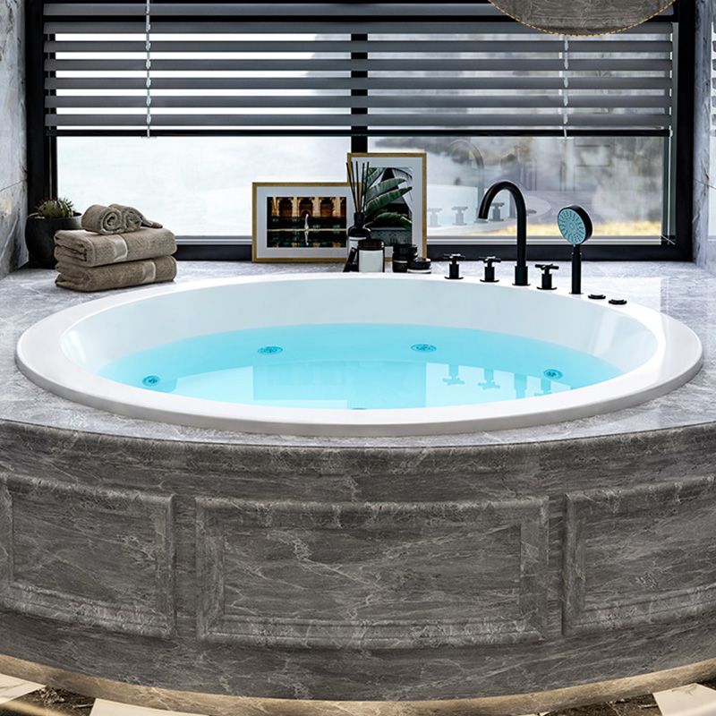 Modern Round White Acrylic Bathtub Embedded Bathtub with Drain and Massage Device