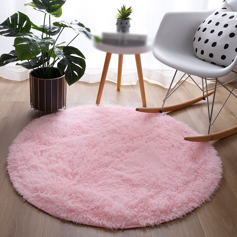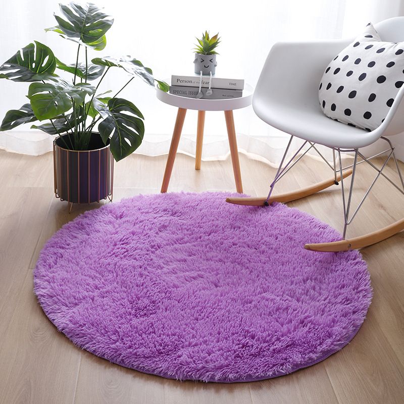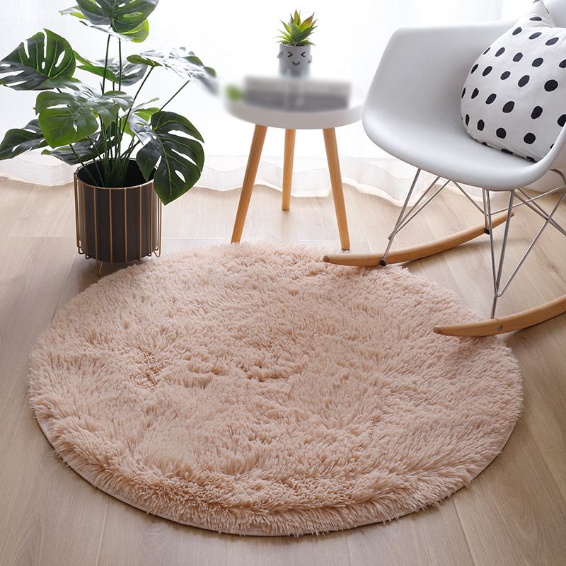 Modern Shag Carpet Solid Relaxing Round Rug Polyester Stain Resistant Indoor Carpet for Living Room