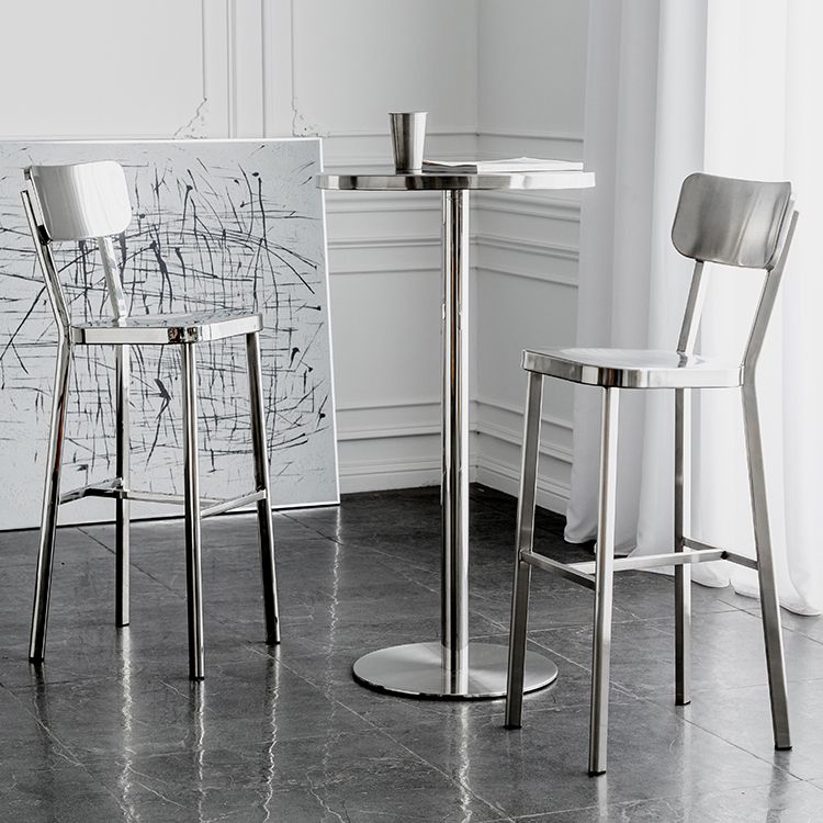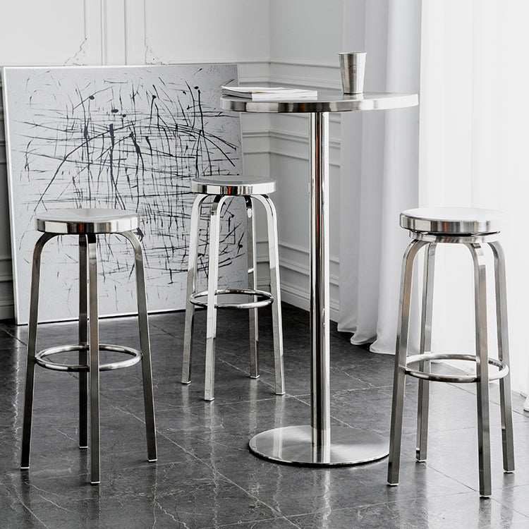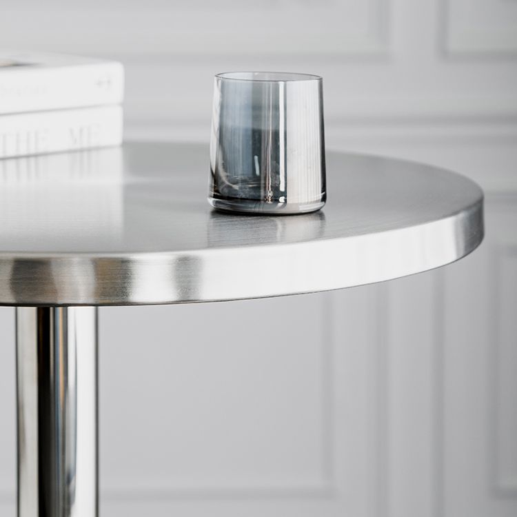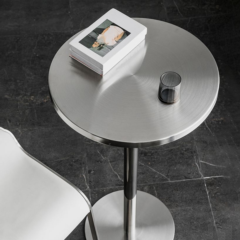 Modern Silver Metal Counter Table with Round Table Top Silver Pedestal Table