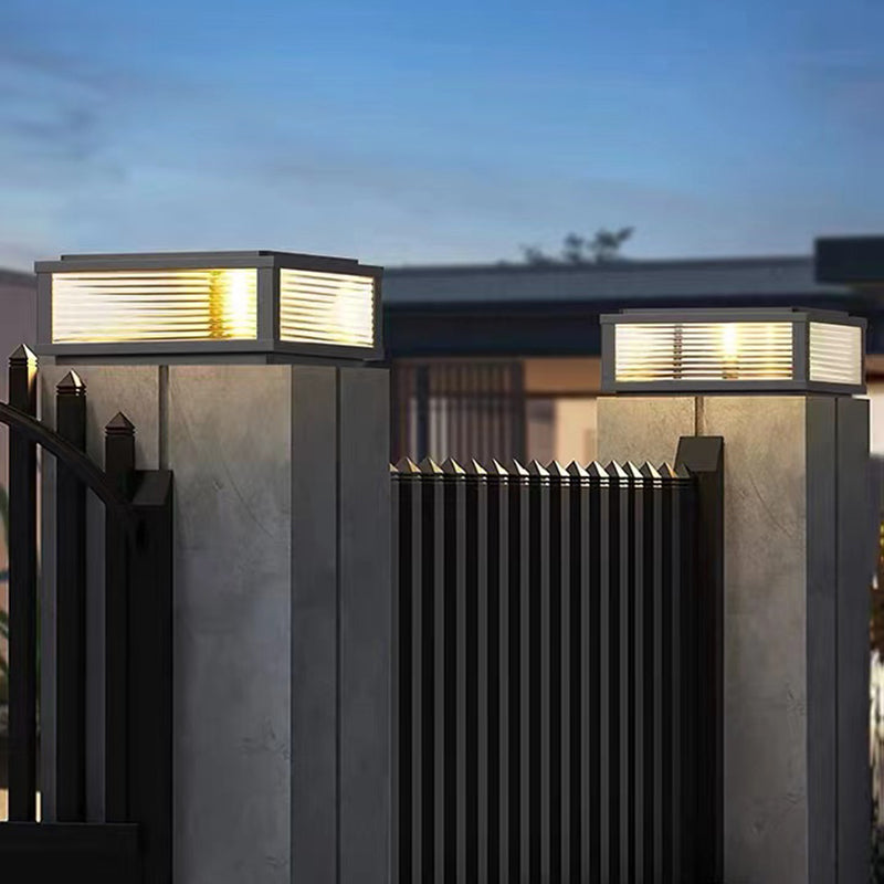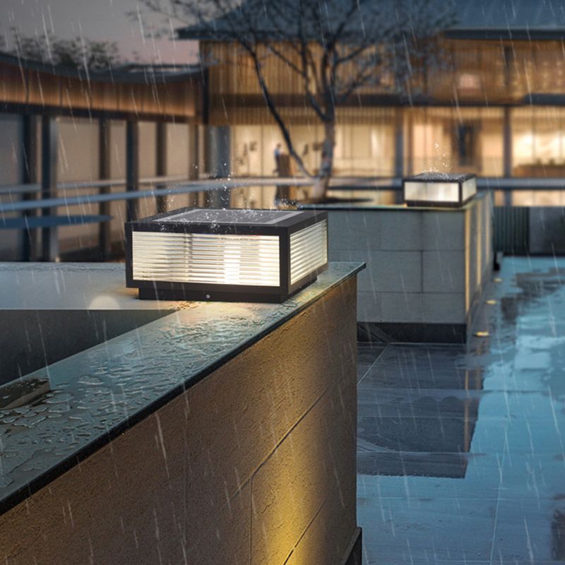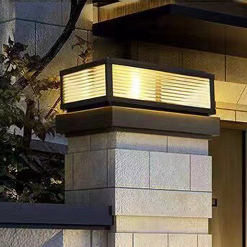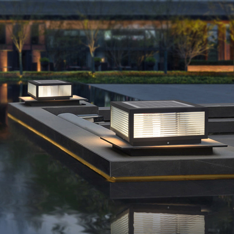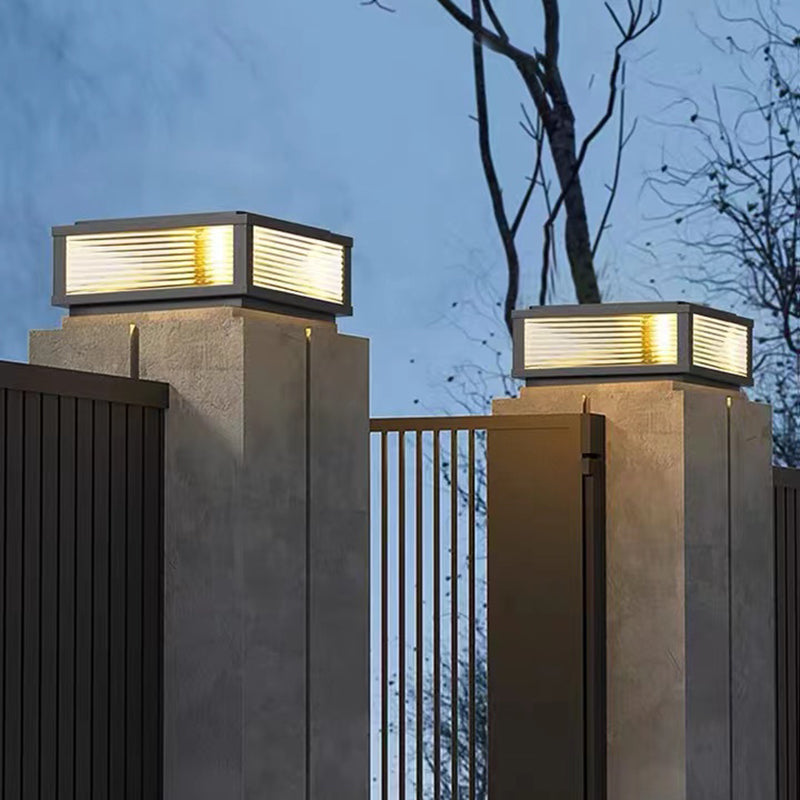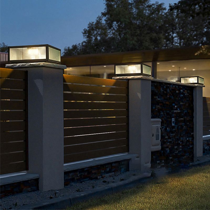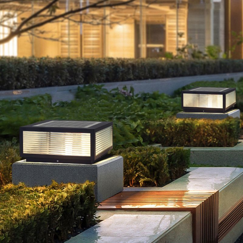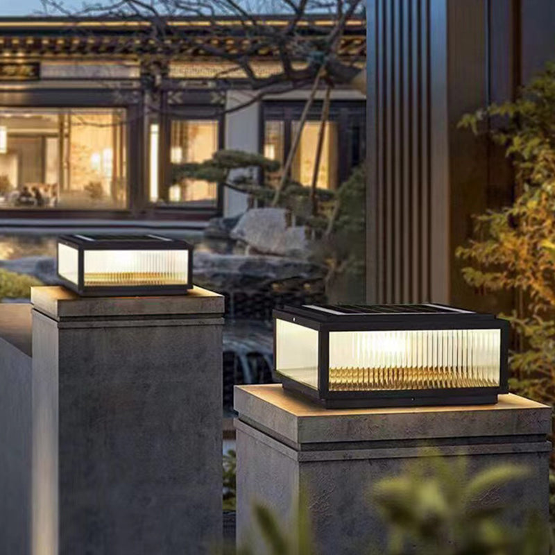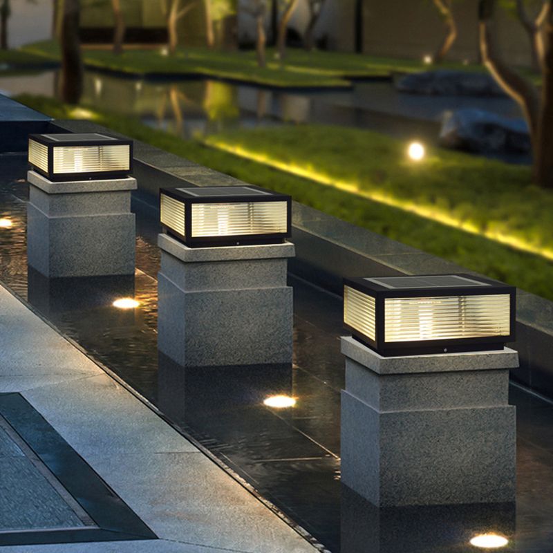 Modern Simple LED Pillar Lamp Glass Shade Solar Light for Backyard