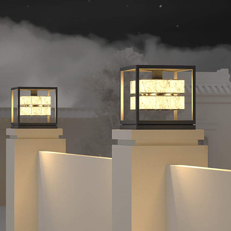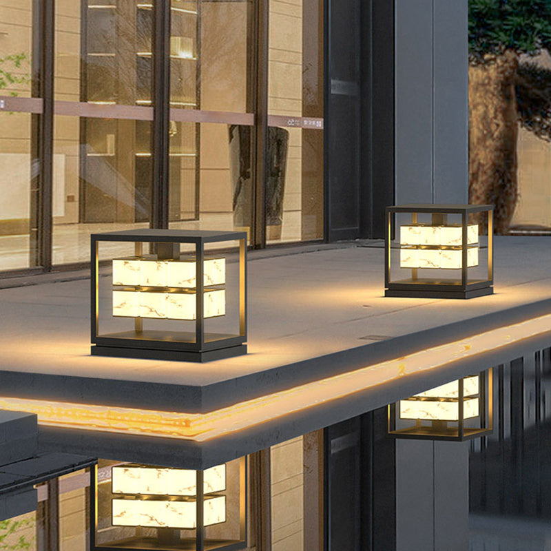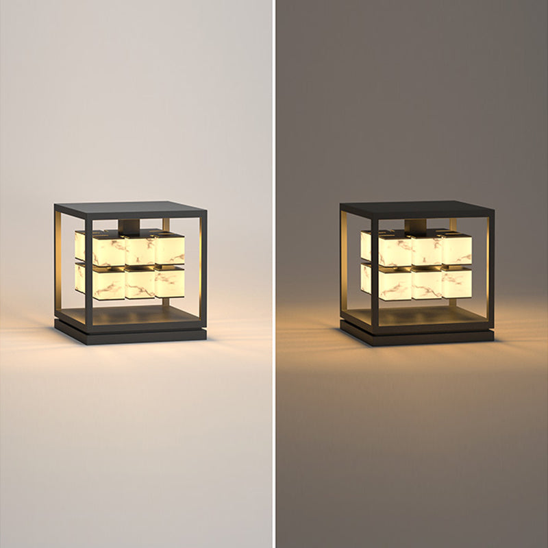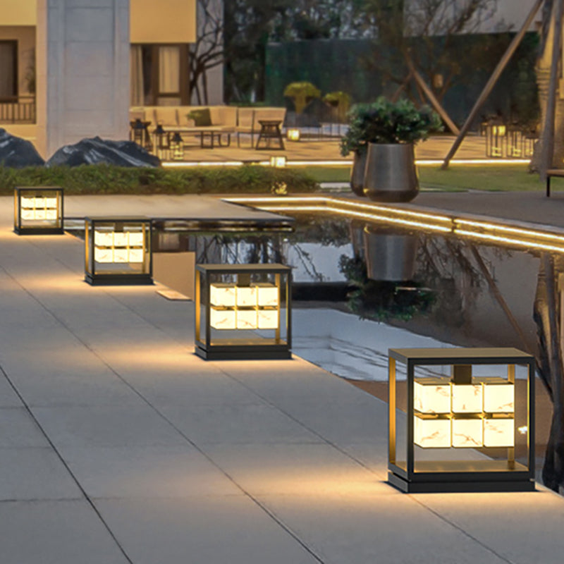 Modern Simple Metal Outdoor Light Cube Shape Waterproof Pillar Lamp for Outdoor