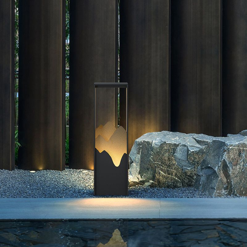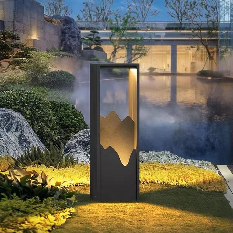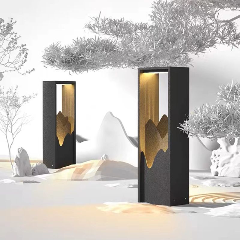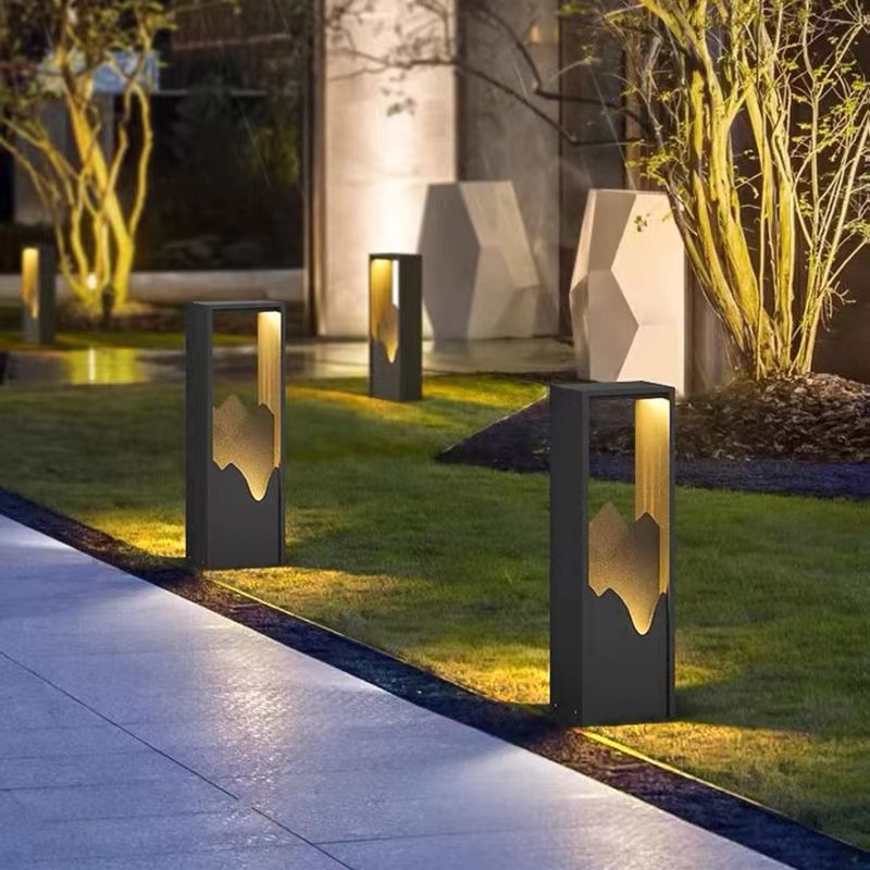 Modern Simple Metal Outdoor Light Rectangle Shape Waterproof Pillar Lamp for Courtyard