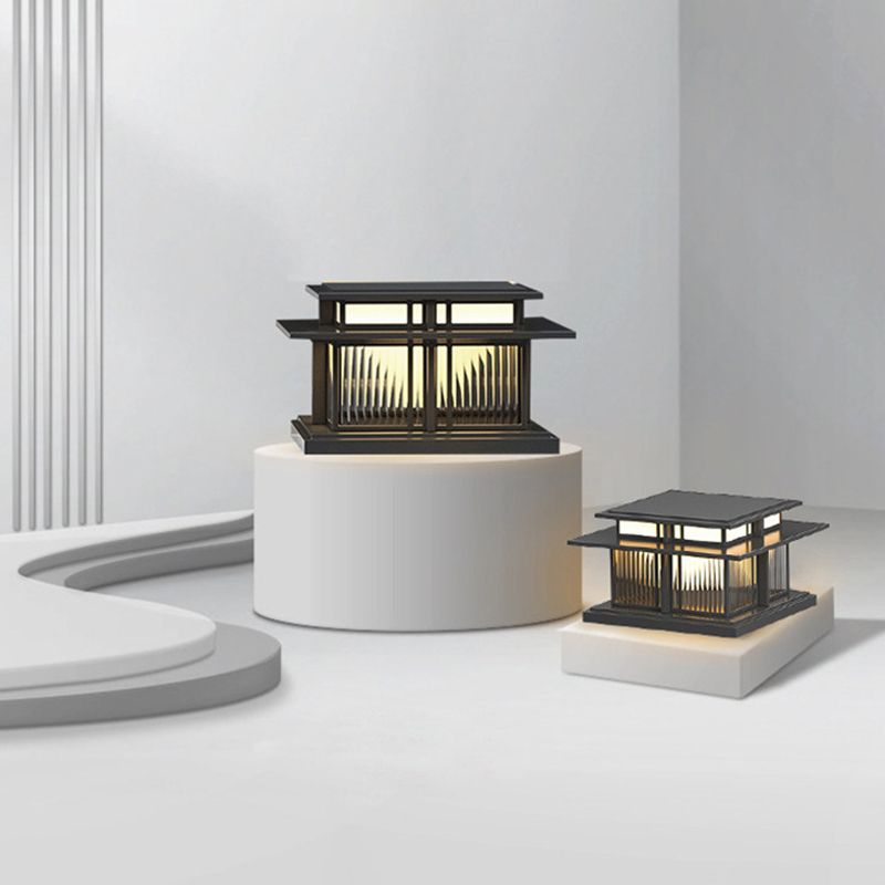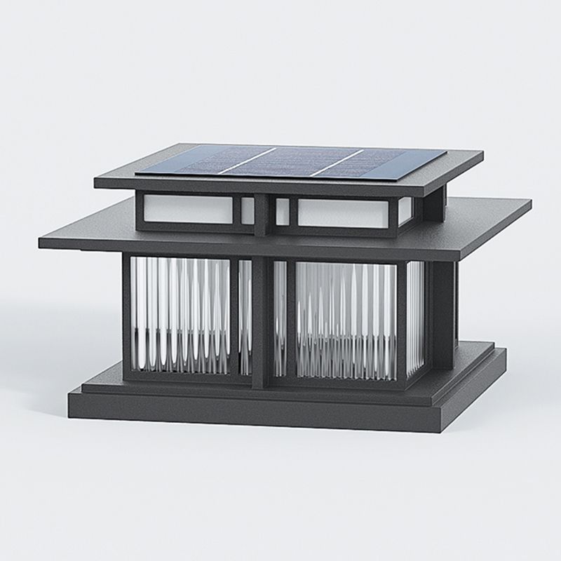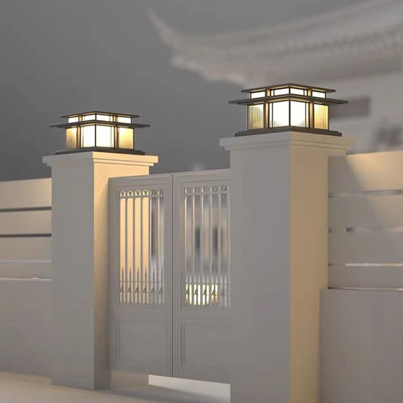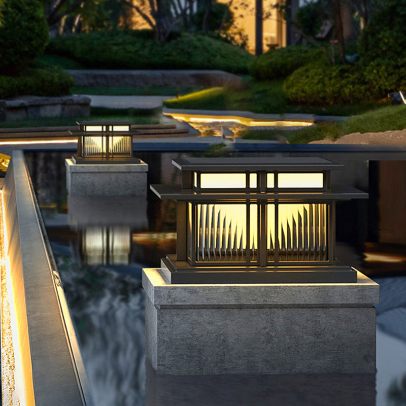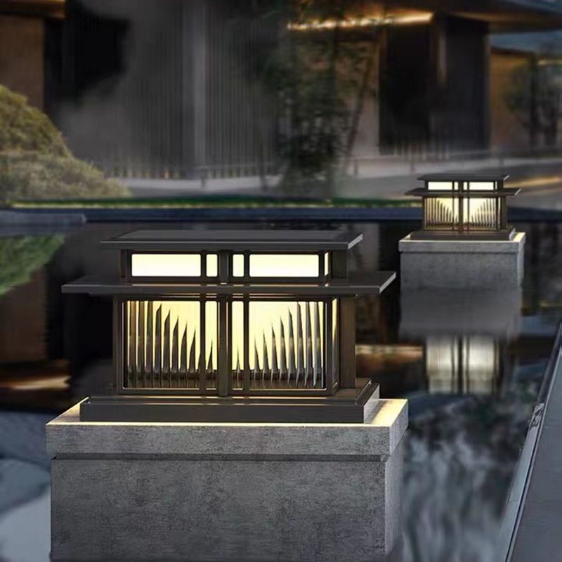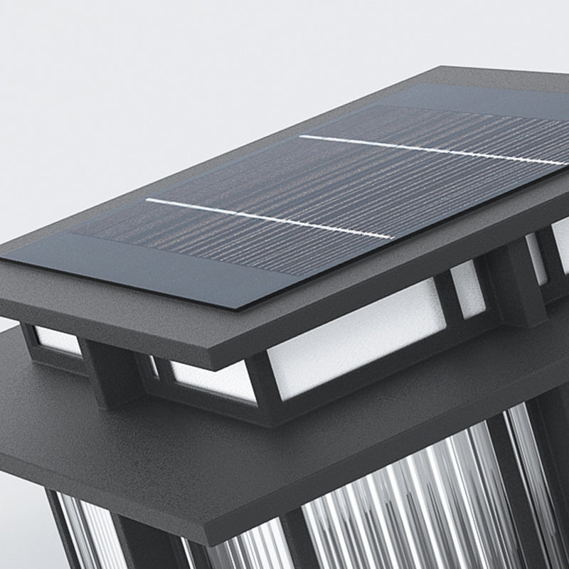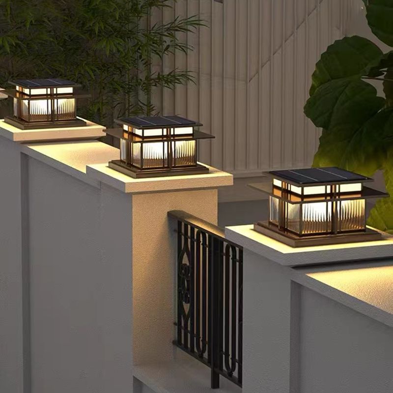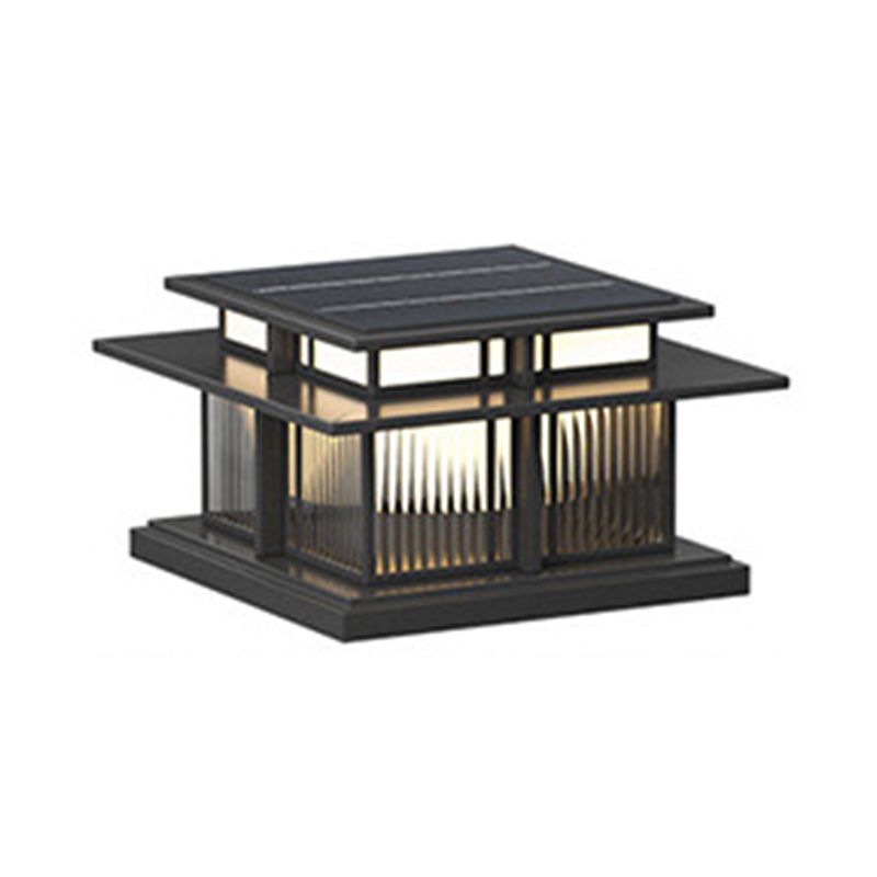 Modern Simple Metal Outdoor Light Square Shape Solar Energy Pillar Lamp for Courtyard
