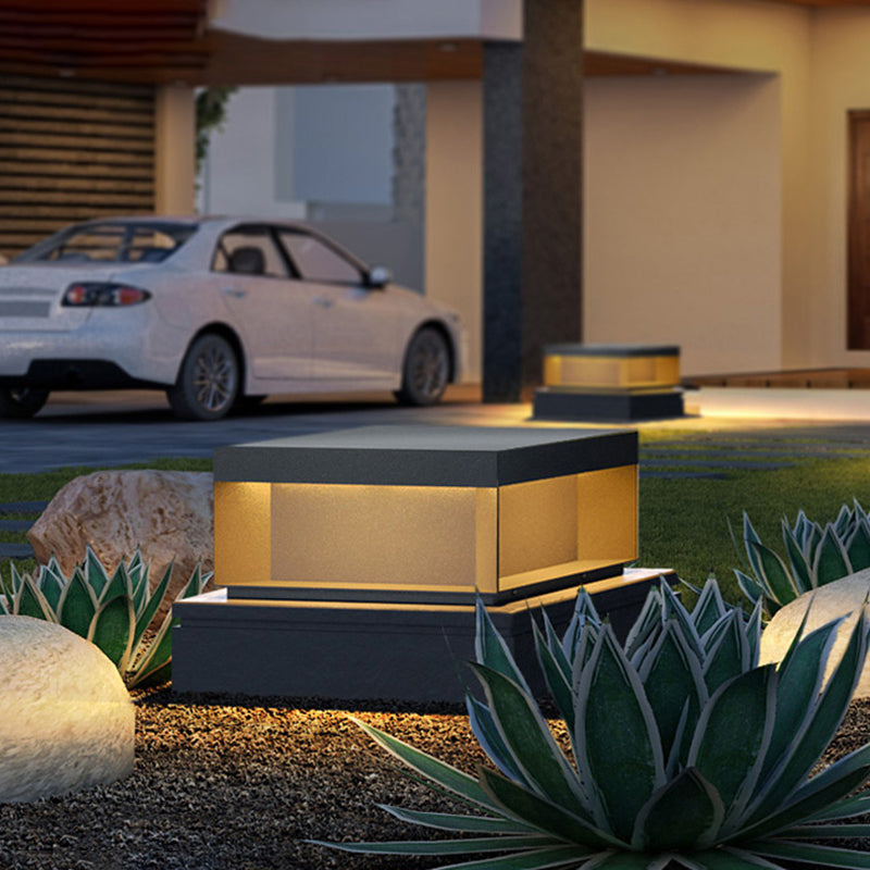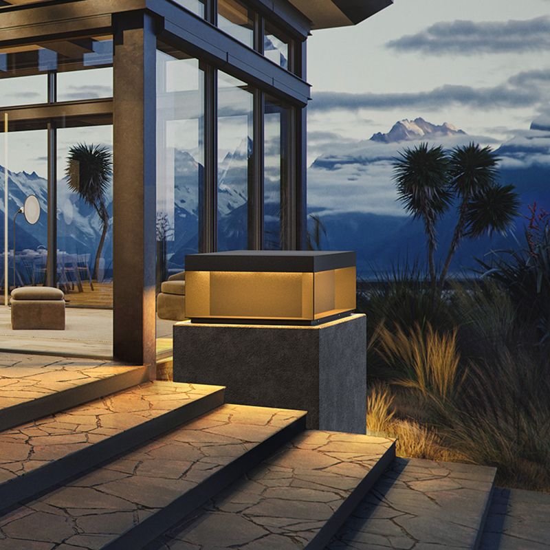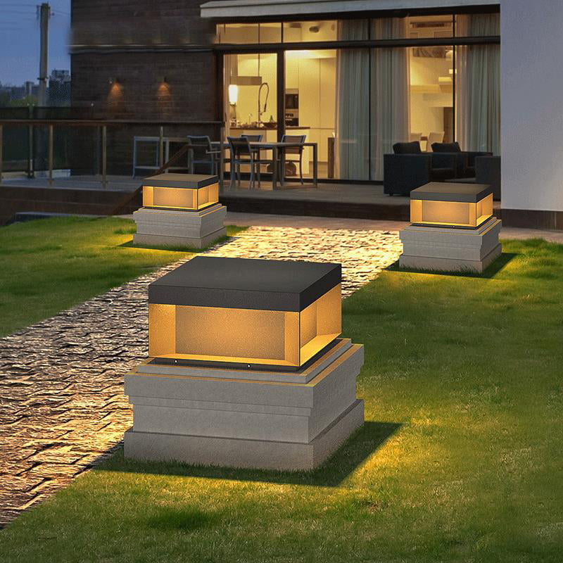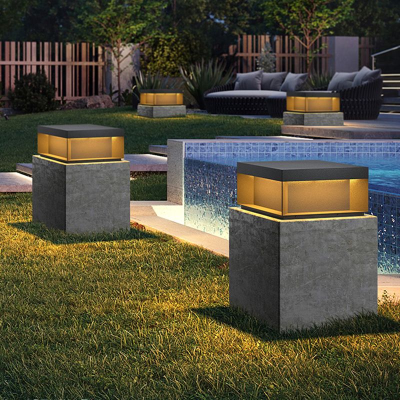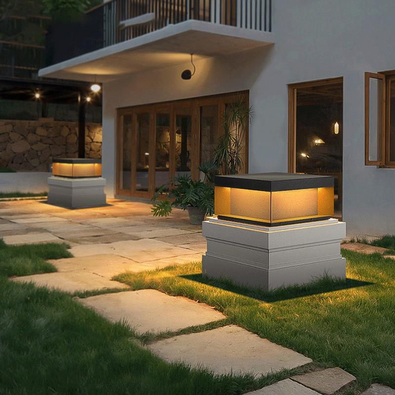 Modern Simple Outdoor Light Geometry Shape Solar Energy Pillar Lamp for Doorway