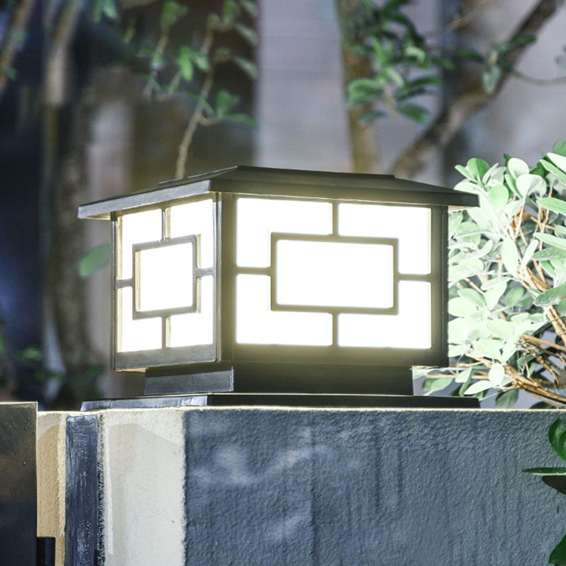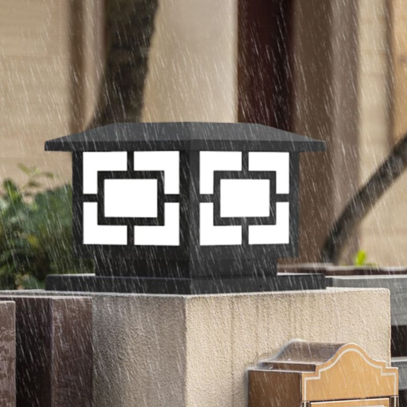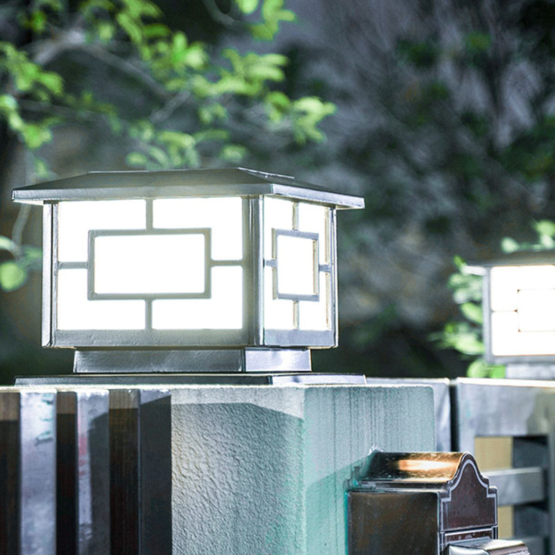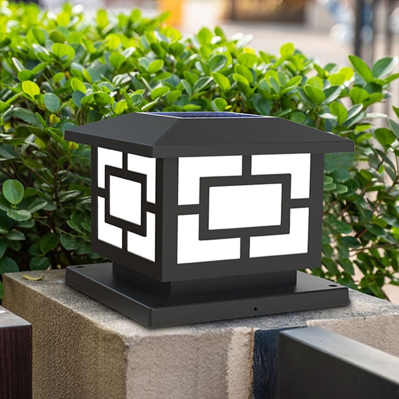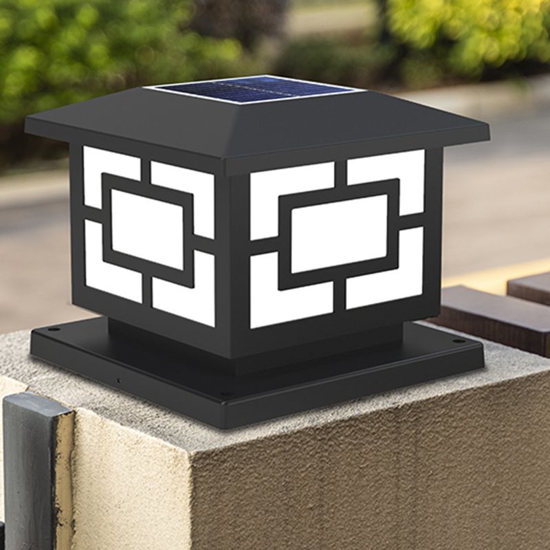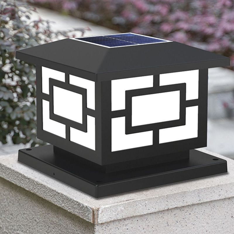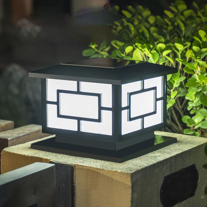 Modern Simple Plastic Outdoor Light Cube Shape Solar Energy Pillar Lamp for Courtyard