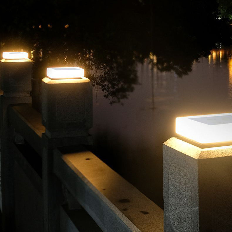 Modern Simple Solar Energy Pillar Lamp Square Shape Pillar Light for Outdoor