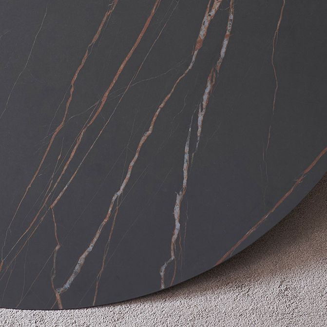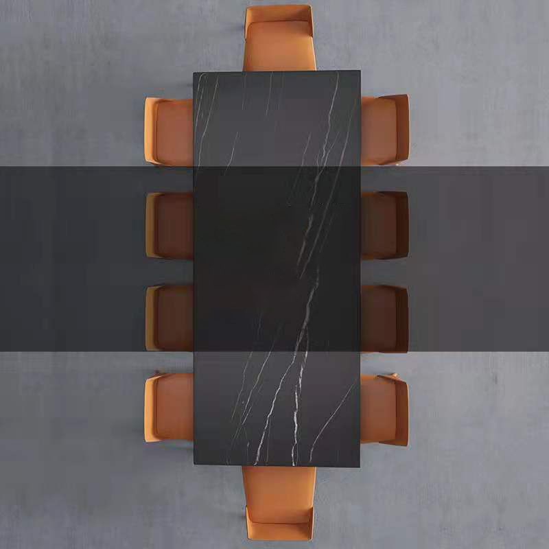Modern Sintered Stone Black Dining Table Set with Rectangle Table and Metal Base Formal Dining Set