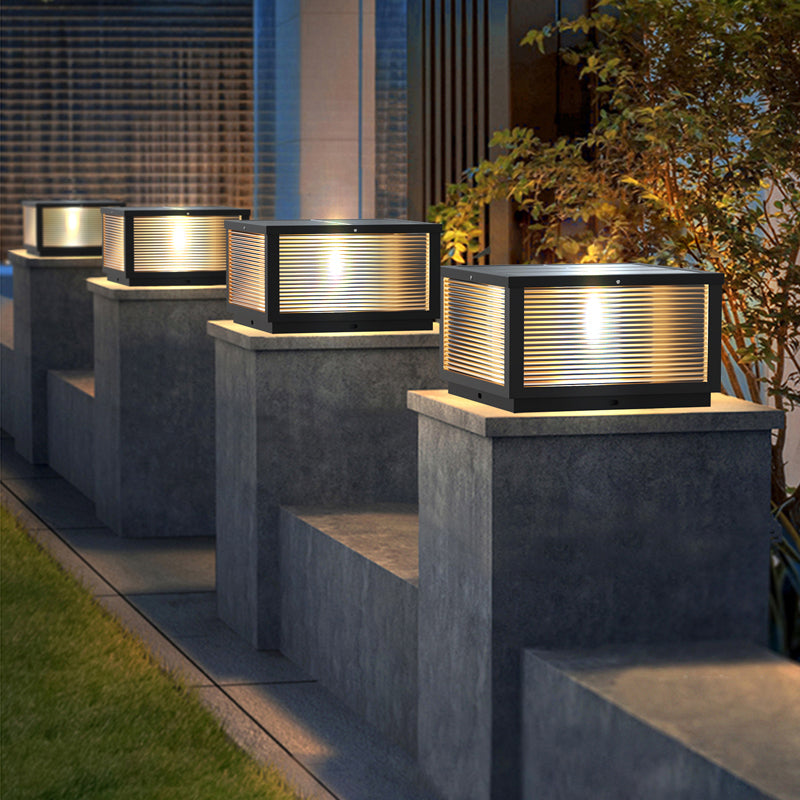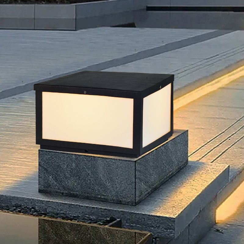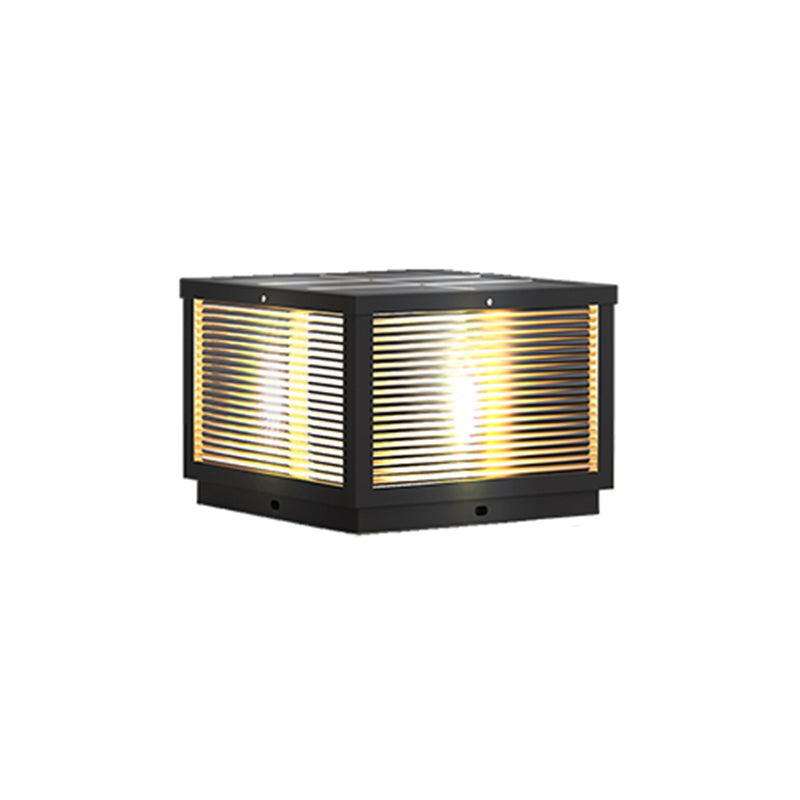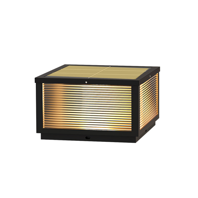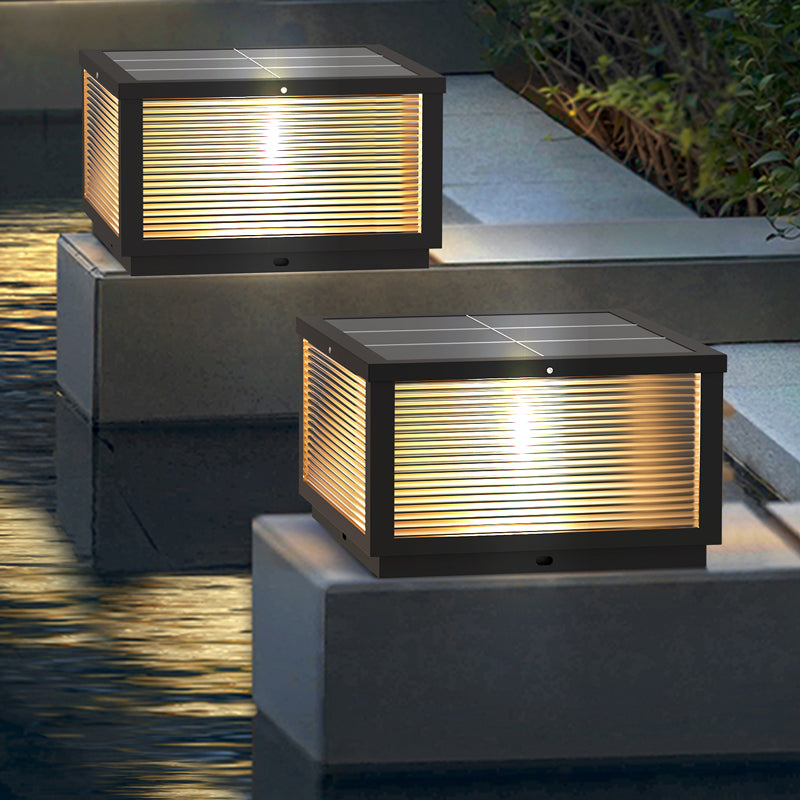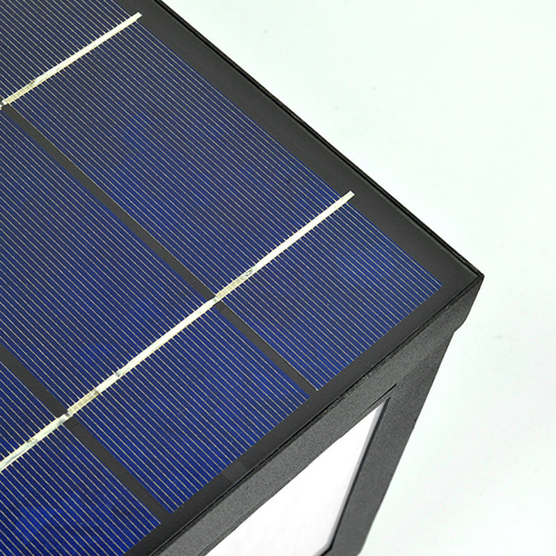 Modern Solar Energy Pillar Lamp Black Square Outdoor Light for Garden