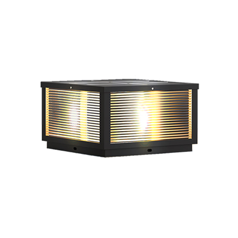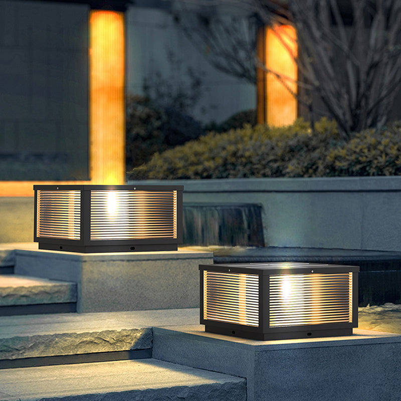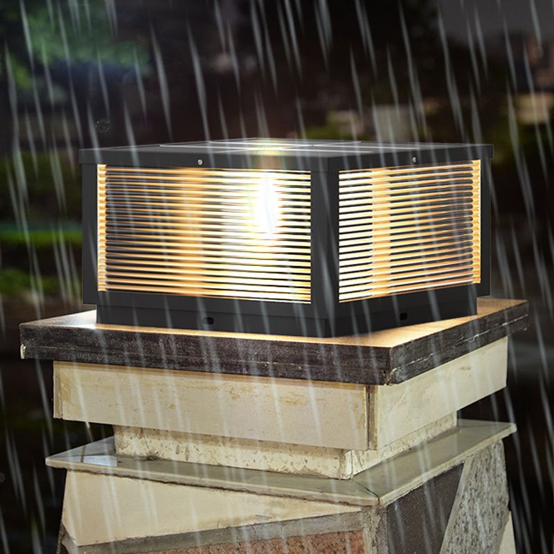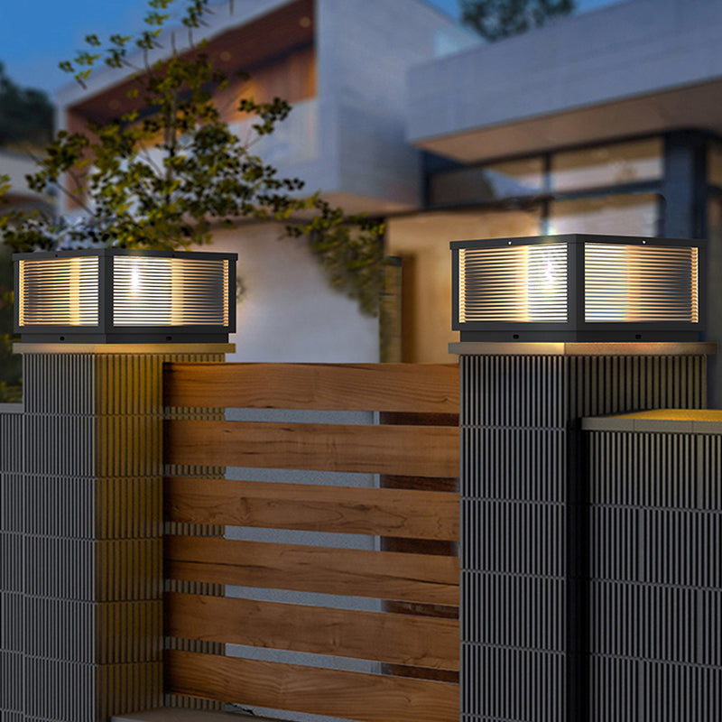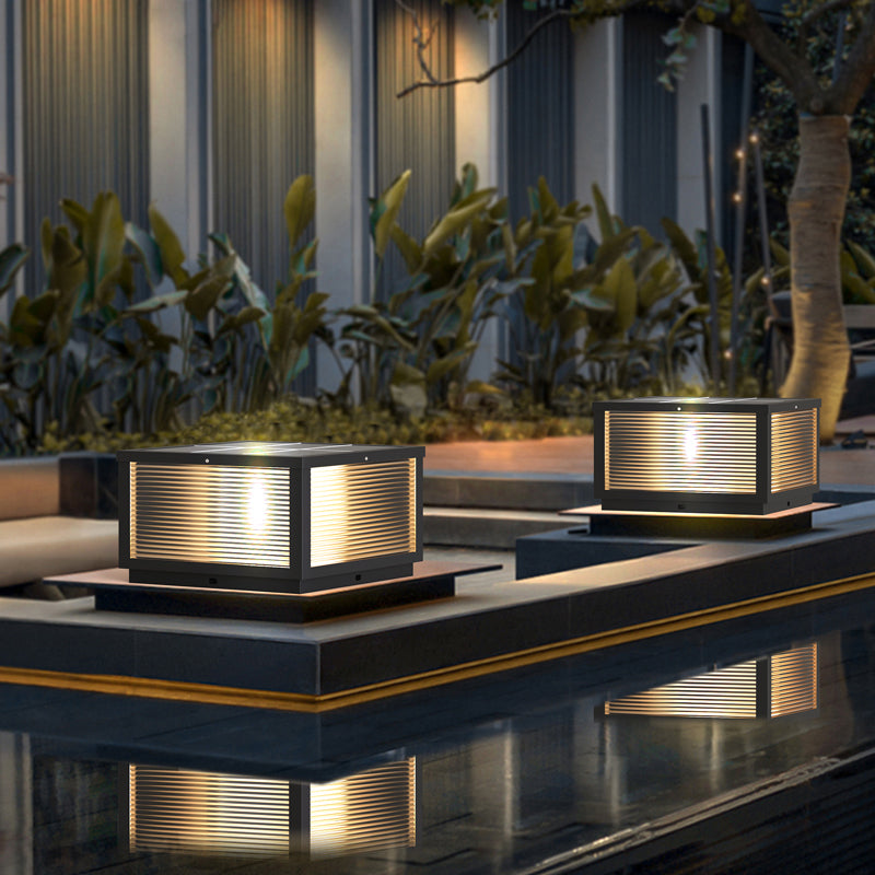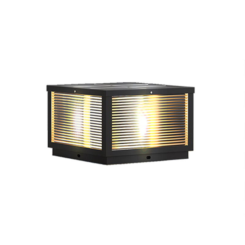 Modern Solar Energy Pillar Lamp Black Square Outdoor Light for Garden