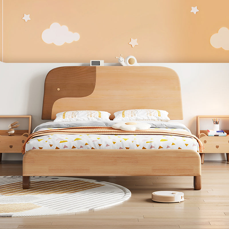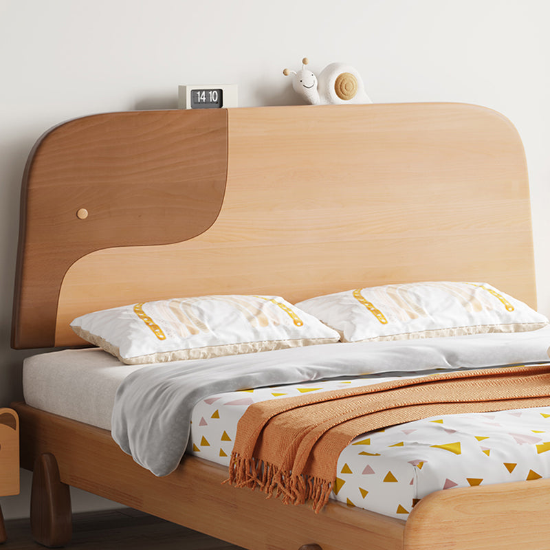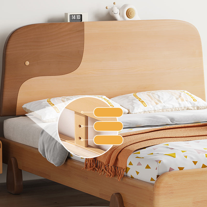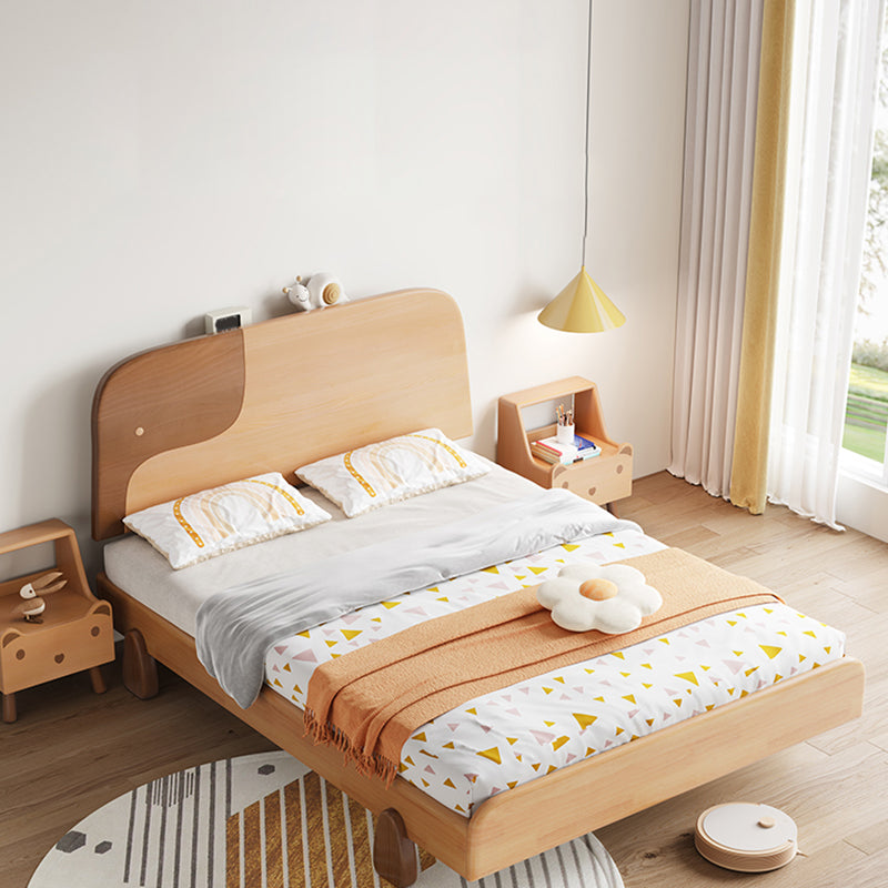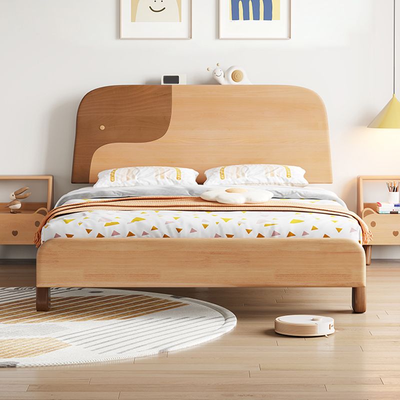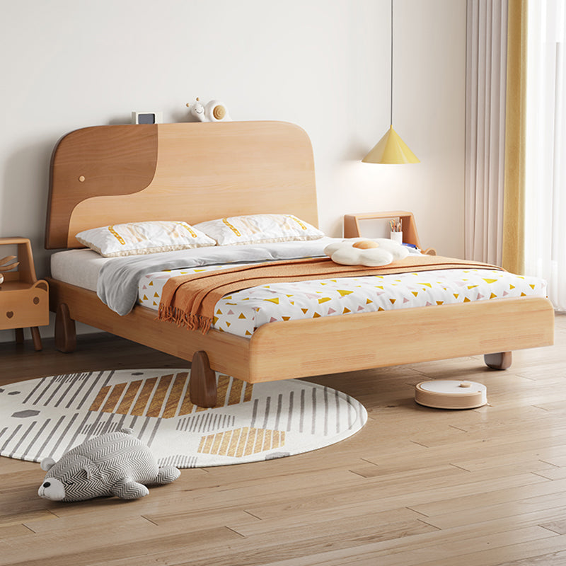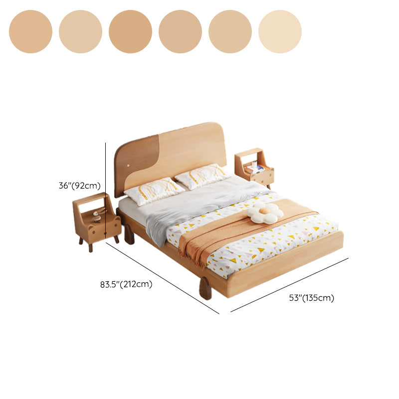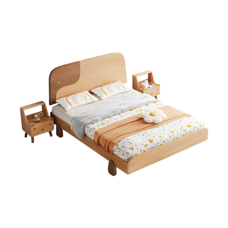 Modern Solid Wood Platform Bed Natural Bed Frame with Panel Headboard
