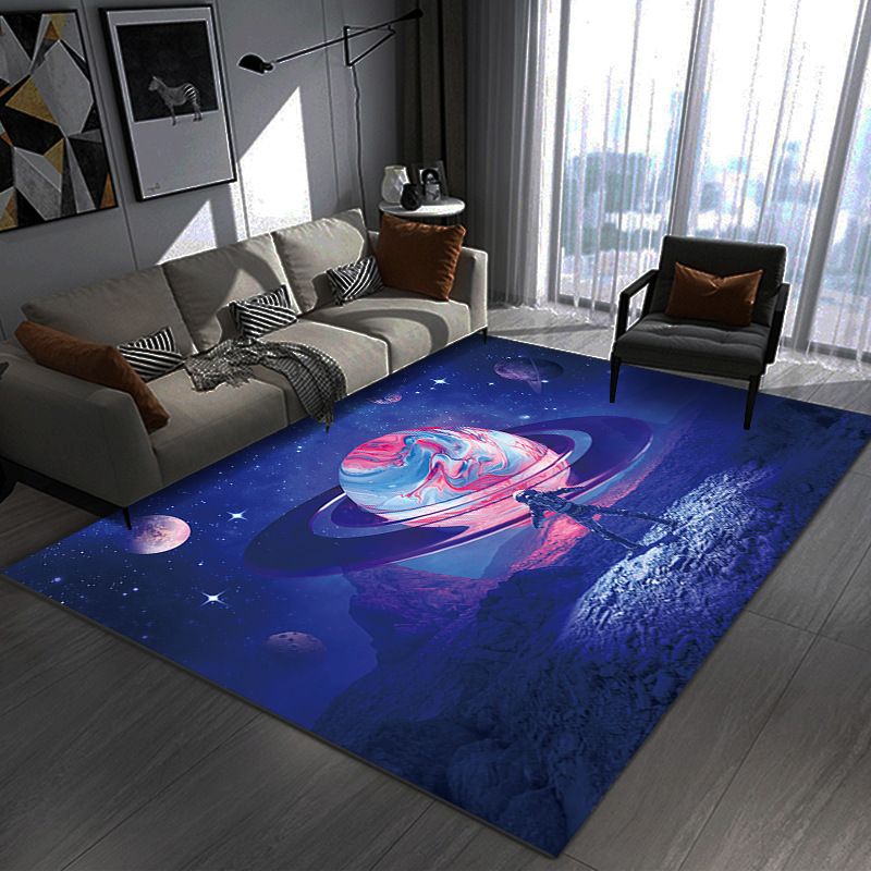 Modern Spacecraft Pattern Rug Polyester Carpet Non-Slip Backing Area Rug for Living Room