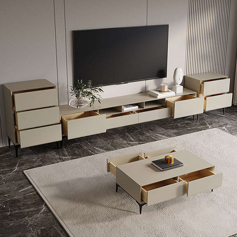 Modern Stone & Wood TV Stand 18.11" H 3/4-Drawer TV Console with Shelves