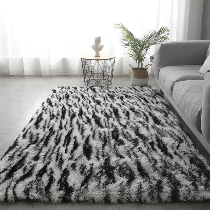 Modern Striped Rug Polyester Shag Indoor Carpet Non-Slip Backing Area Rug for Living Room
