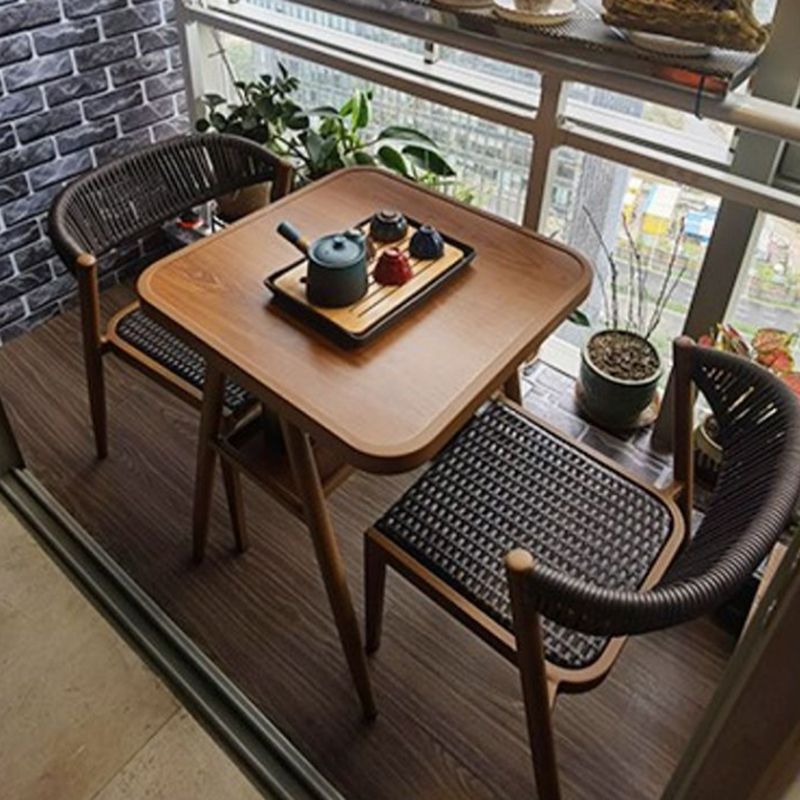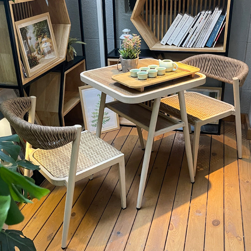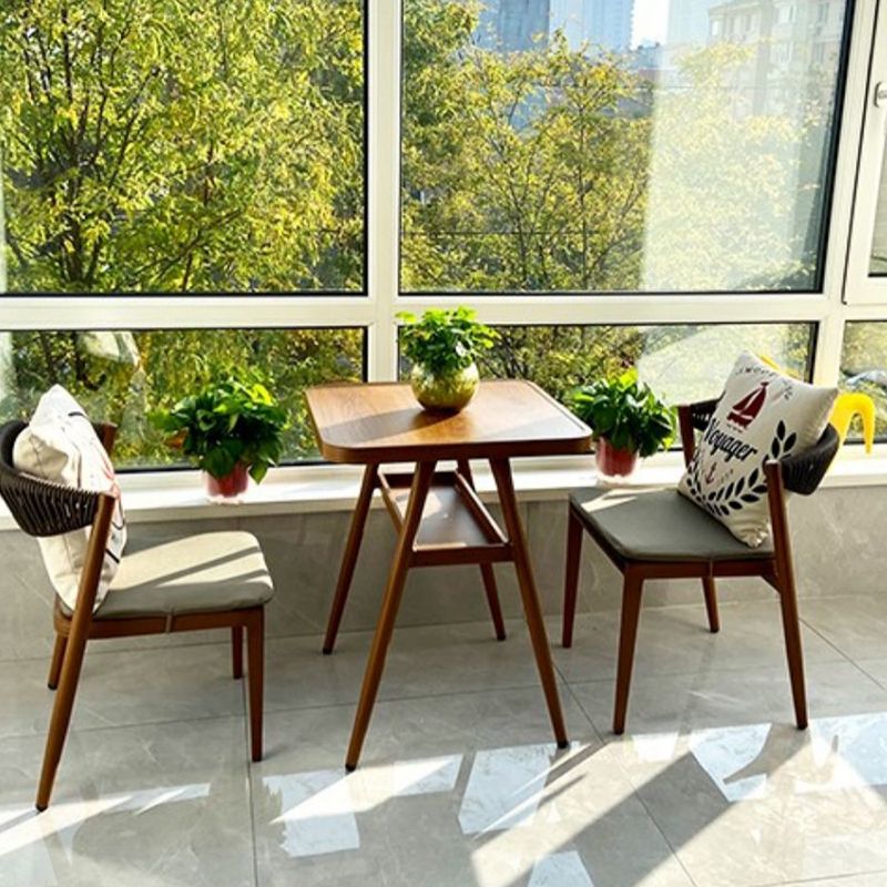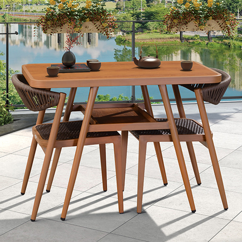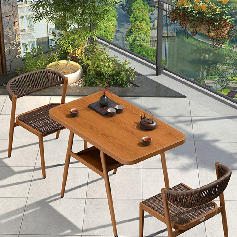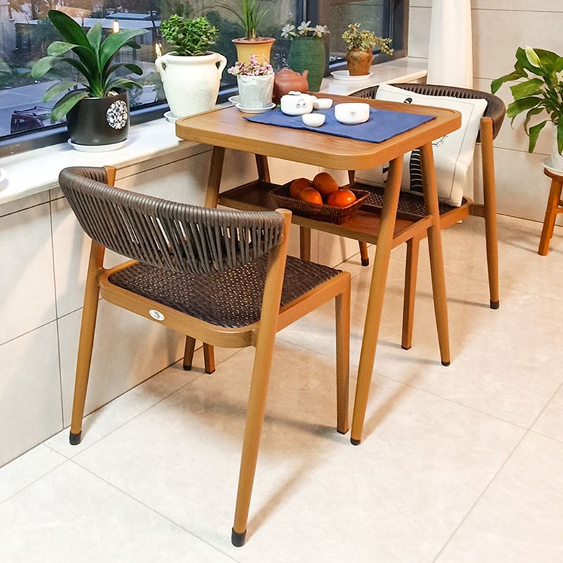 Modern Style Bistro Set Wooden 1/3 Pcs Metal Base Bistro Set