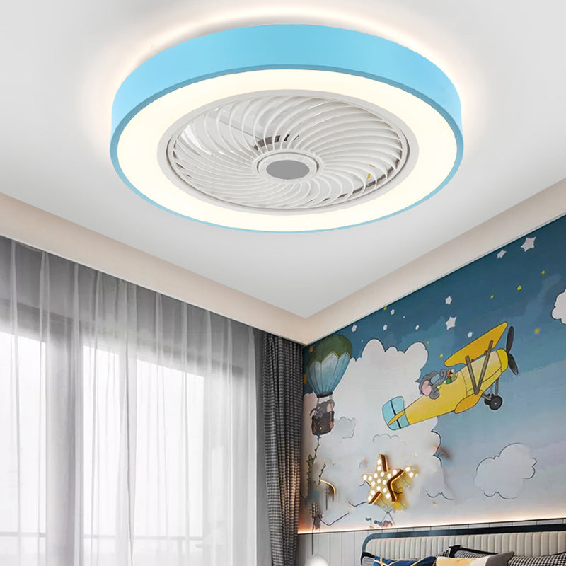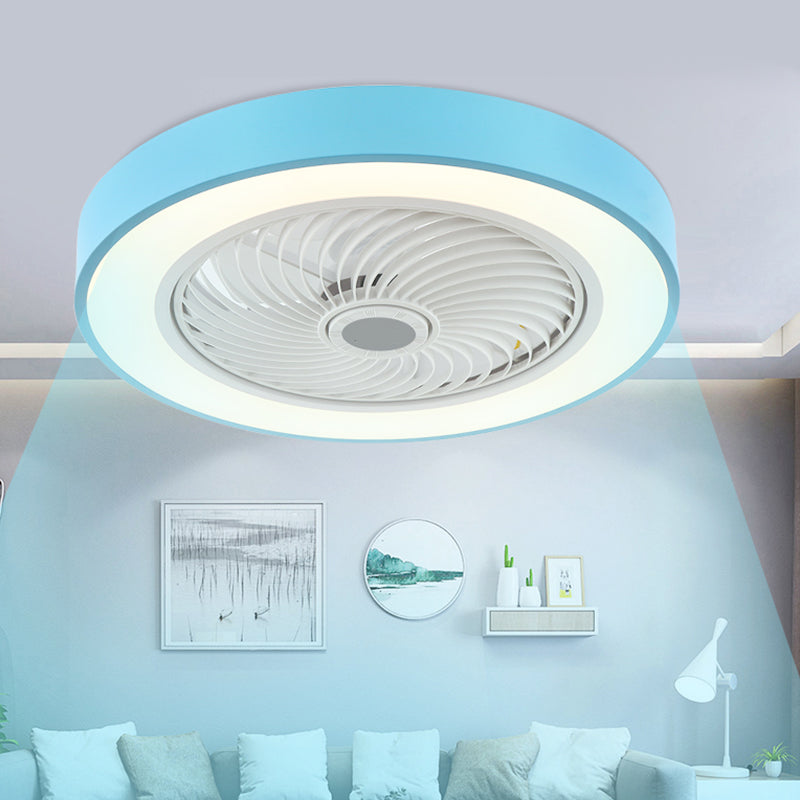 Modern Style Round Ceiling Fan Light Metal 1-Light LED Flush Light