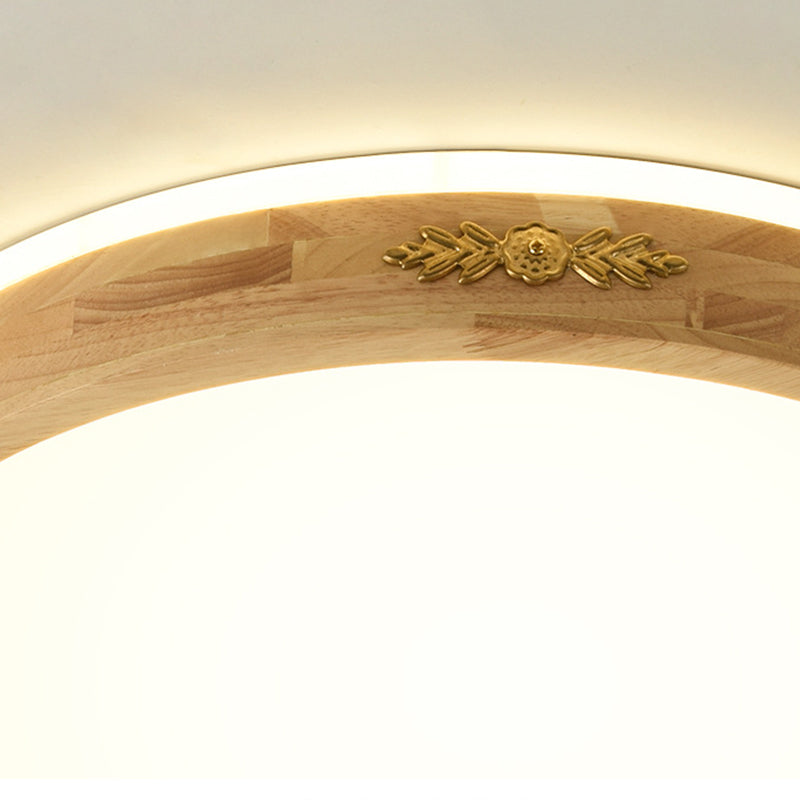 Modern Style Round Shape Flush Mount Wood 1-Light Ceiling Light for Bedroom