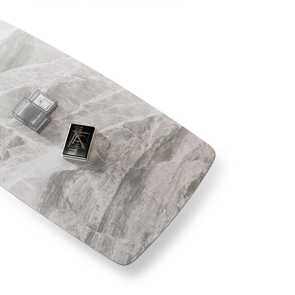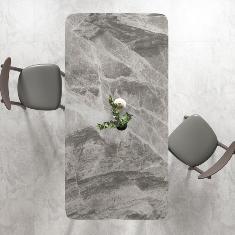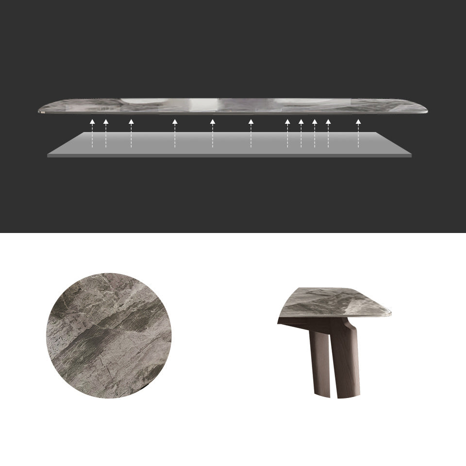 Modern Style Sintered Stone Dining Table with Grey Table and 4 Solid Wood Legs Base for Home Use