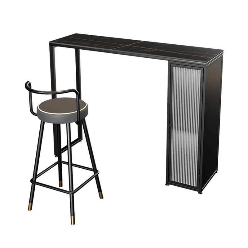 Modern Style Sintered Stone Top Rectangle Bar Dining Table with Storage