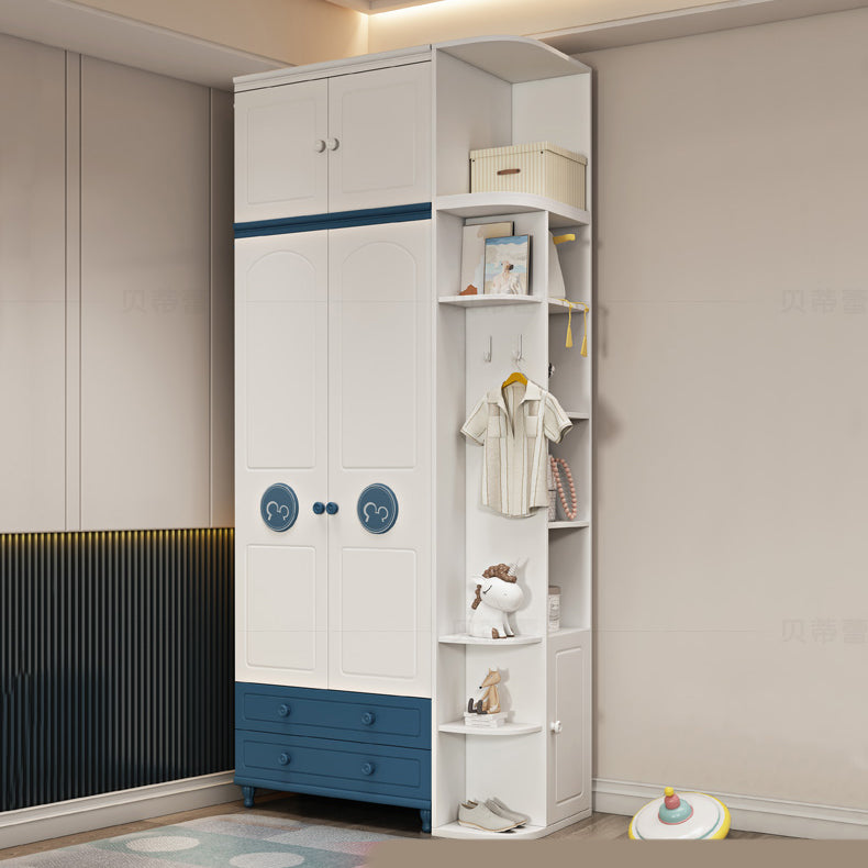 Modern Style Wooden Kids Closet Cloth Rod Included Bedroom Youth Armoire with Legs