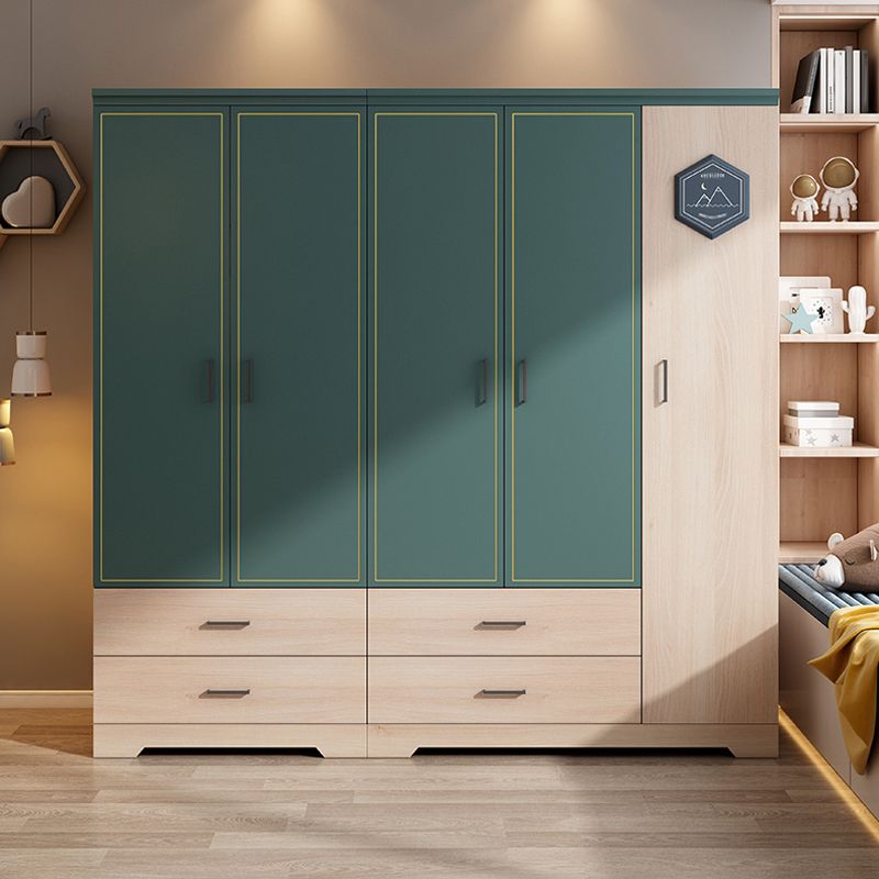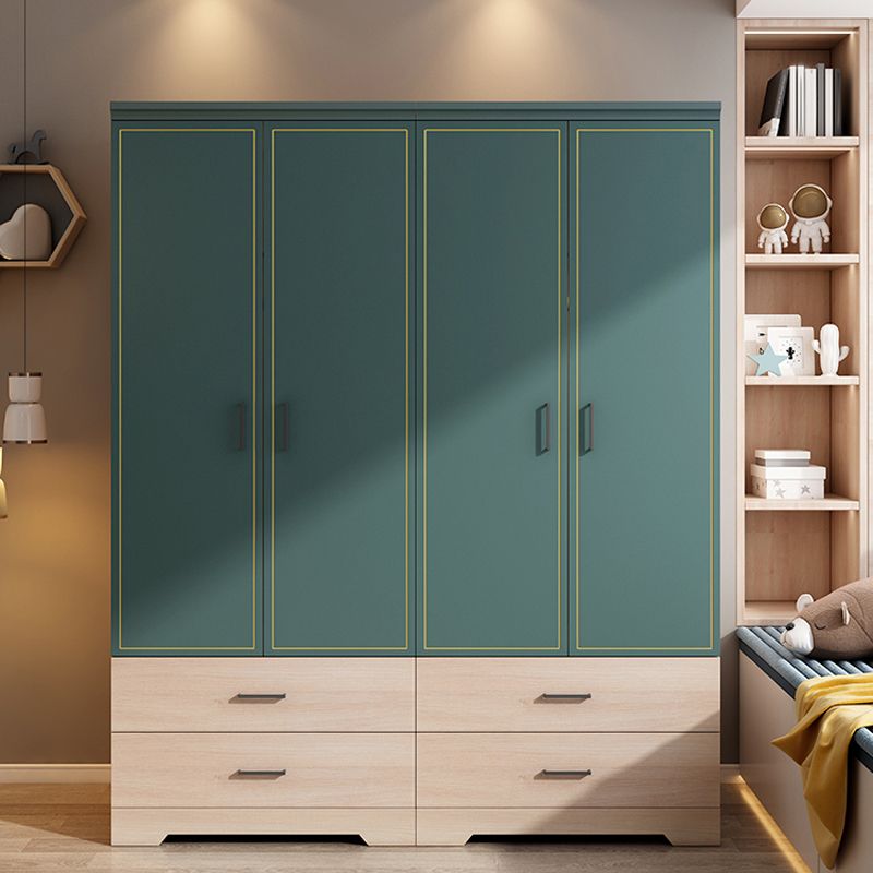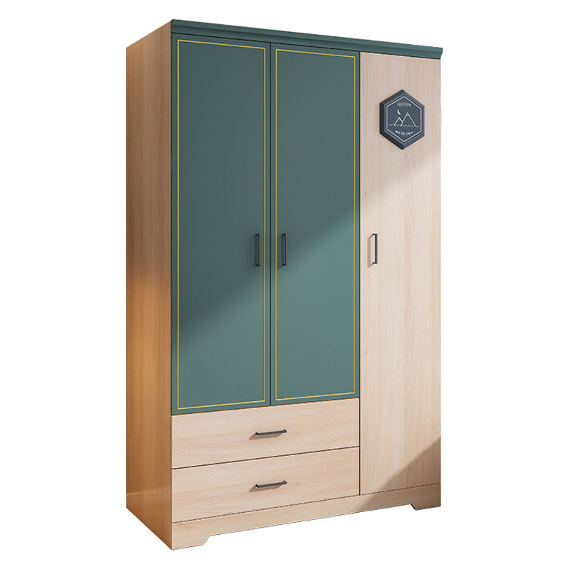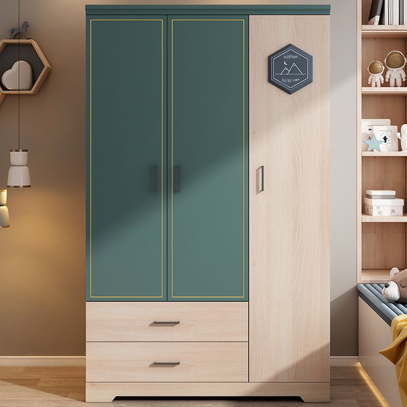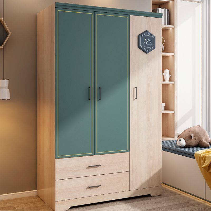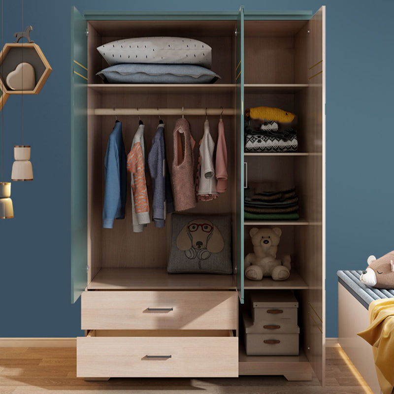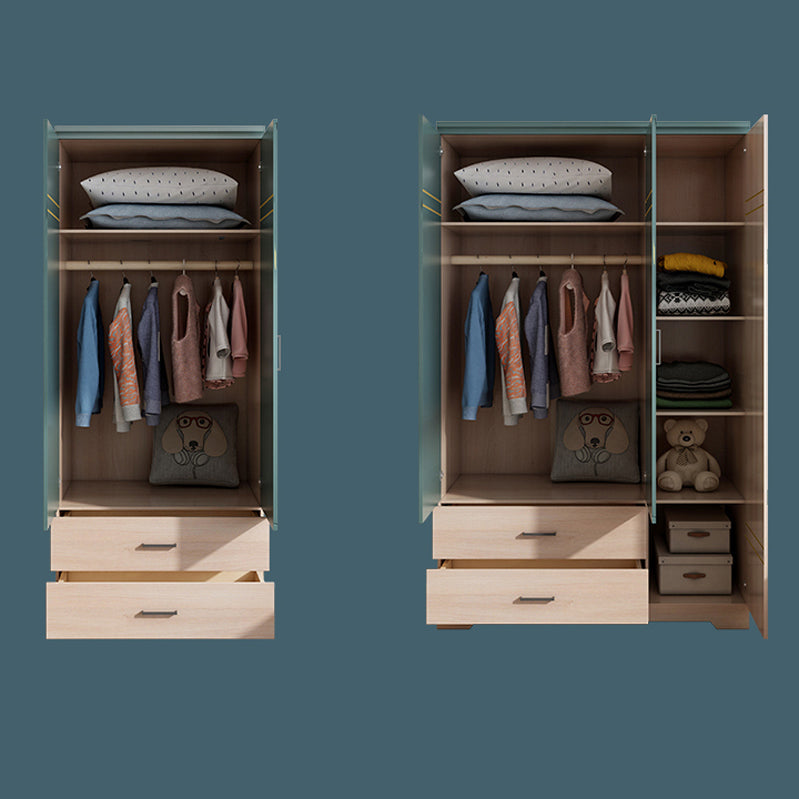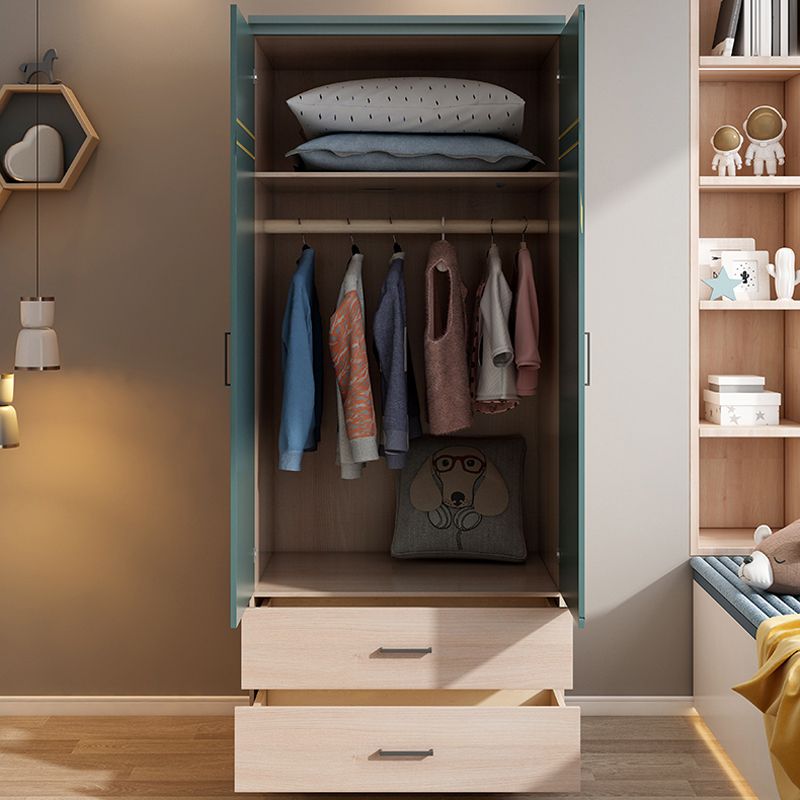 Modern Style Youth Armoire Wooden Bedroom Hanging Clothes Rack with Doors