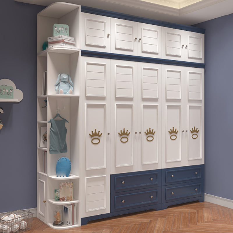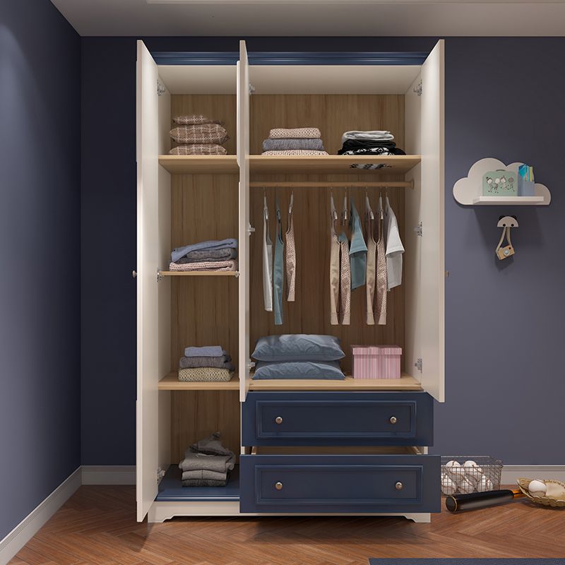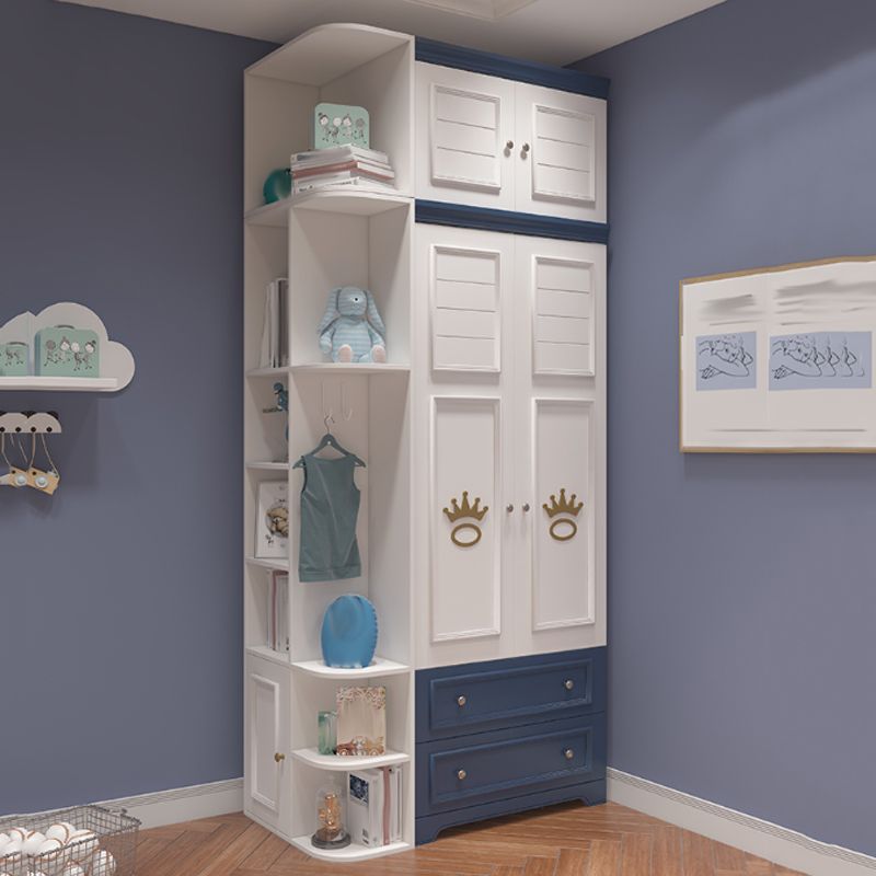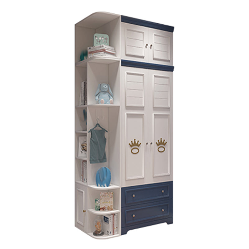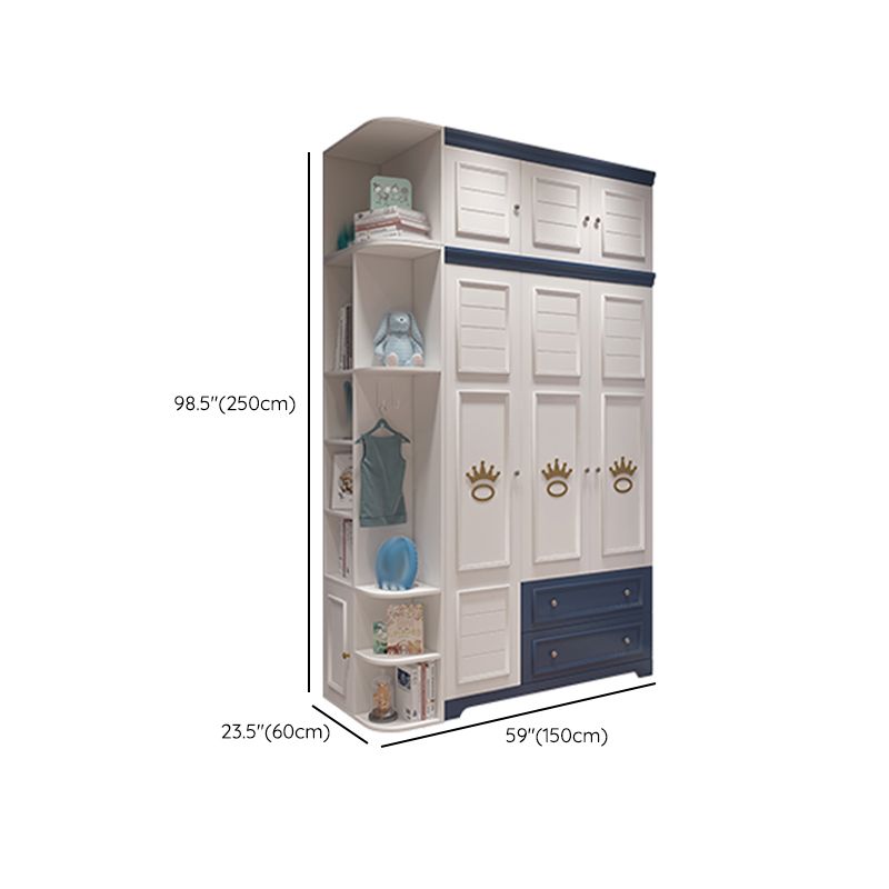 Modern Style Youth Armoire Wooden Bedroom Hanging Clothes Rack with Shelves